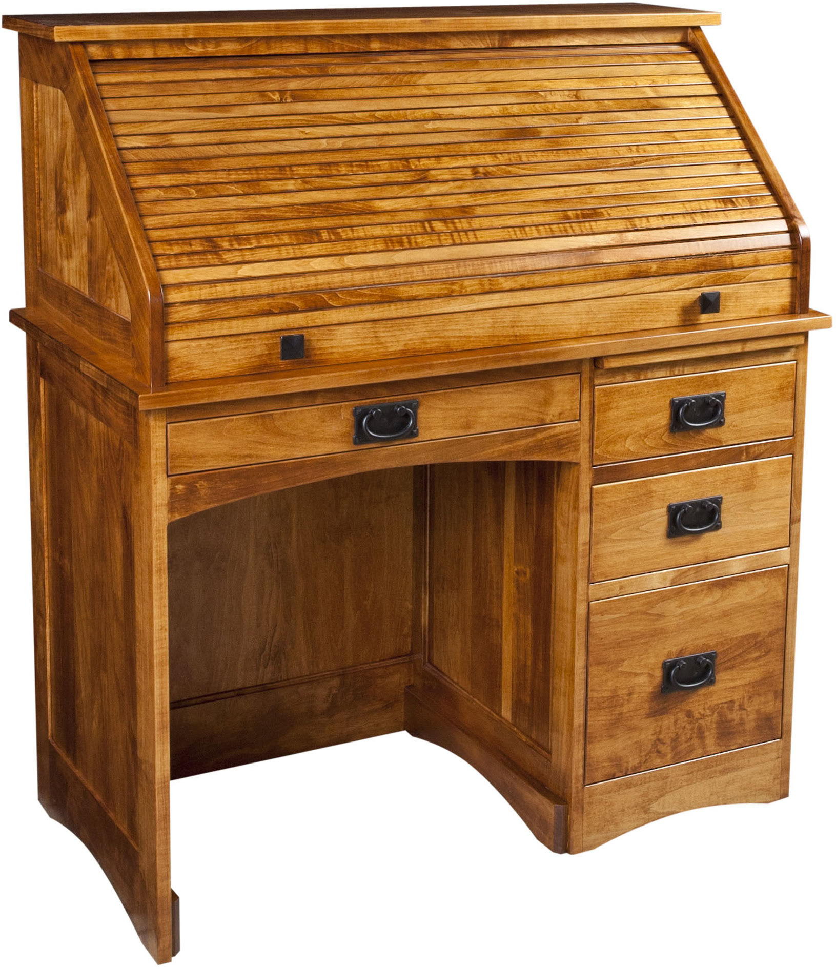 The 42-inch Mission Roll Top Desk is the perfect size for smaller work areas such as a home office, spare room or a corner of a student bedroom. The roll top feature makes it easy to get work done and stay organized — thanks to the shelves, cuddies and small drawers. Then close the roll top, and everything is out of sight. The drawers down below are ideal for office supplies and hanging files. Also, with its roll top feature, the unit brings the feel of Americana to your home. Amish cabinetmakers – the best in the Midwest – build the desk. And they use top hardwoods like oak, cherry and maple. No wonder the piece is so attractive, sturdy and heirloom-quality! Ready to order? Click the “Customize this product” button below. Then, fill out the customizing fields. Or call 877-357-2106.