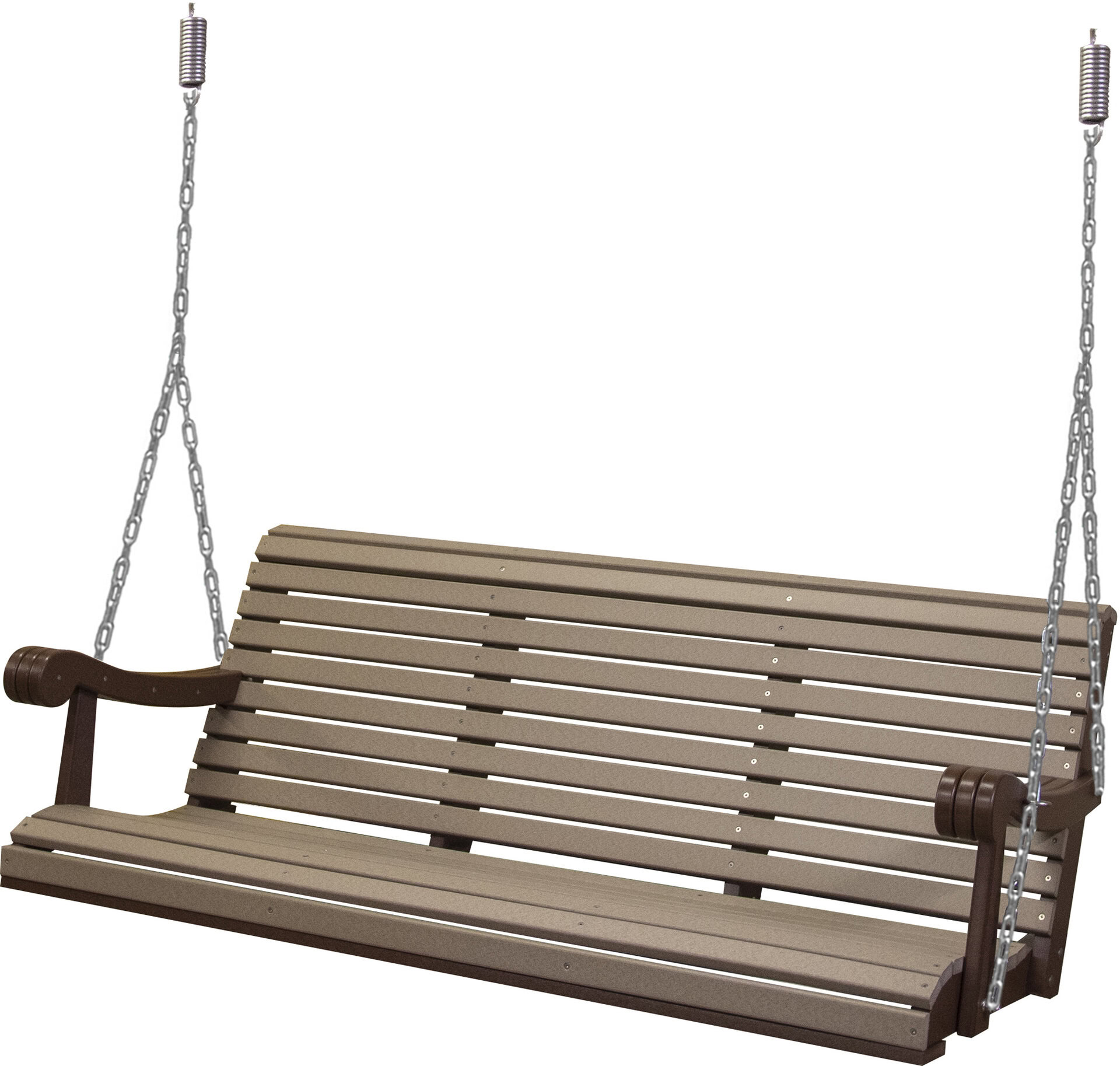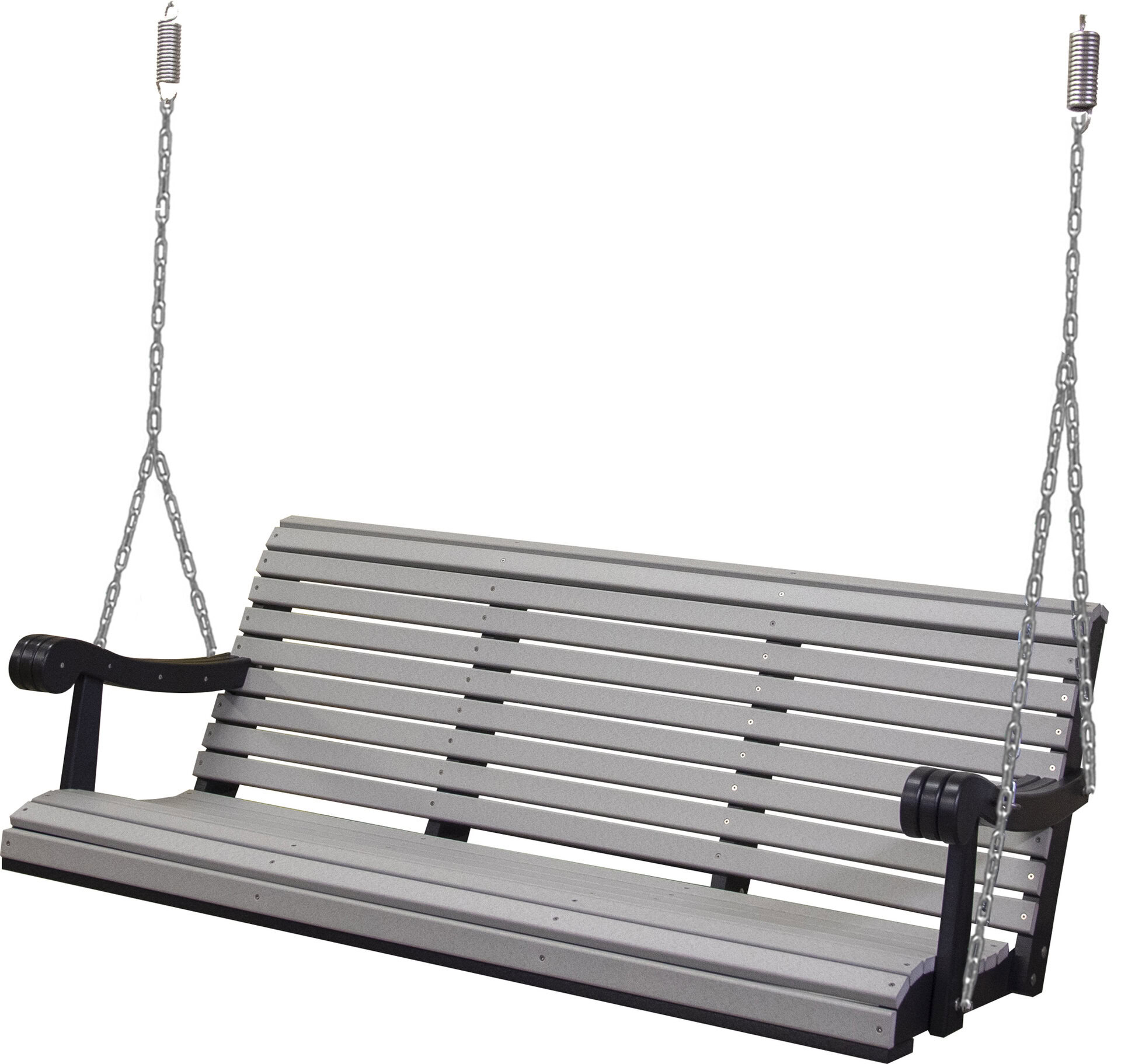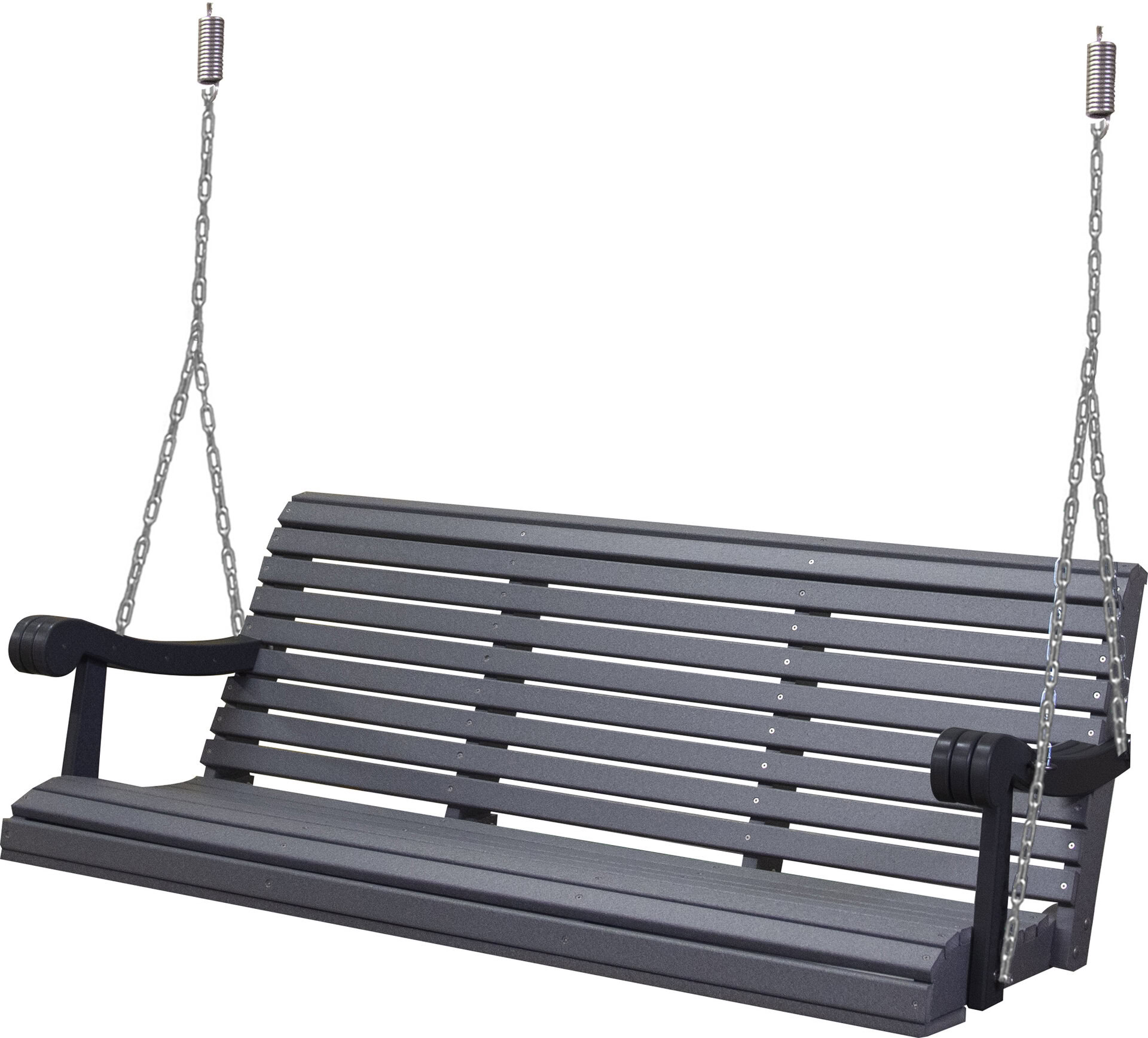 Amish craftsmen constructed the 5 Ft. Poly Grandpa Swing from recycled materials. This swing is weather-resistant and ready to hang on your porch. With a contoured seat and back, this comfortable swing will provide hours of swinging for years to come. With custom options available, such as color, you can create the perfect swing for your home.