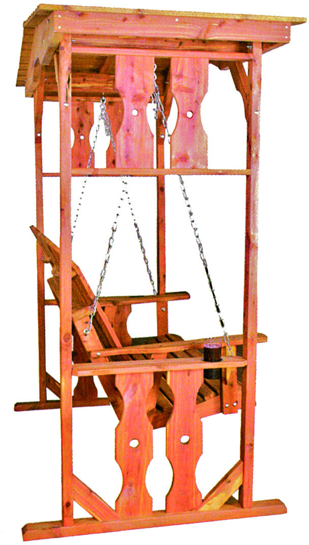 Swing away in the shade with this Adirondack Covered Swing. Side panels feature decorative cutouts and cupholders. The 4′ swing is available in the Adirondack style pictured or in the Straight Back style.
