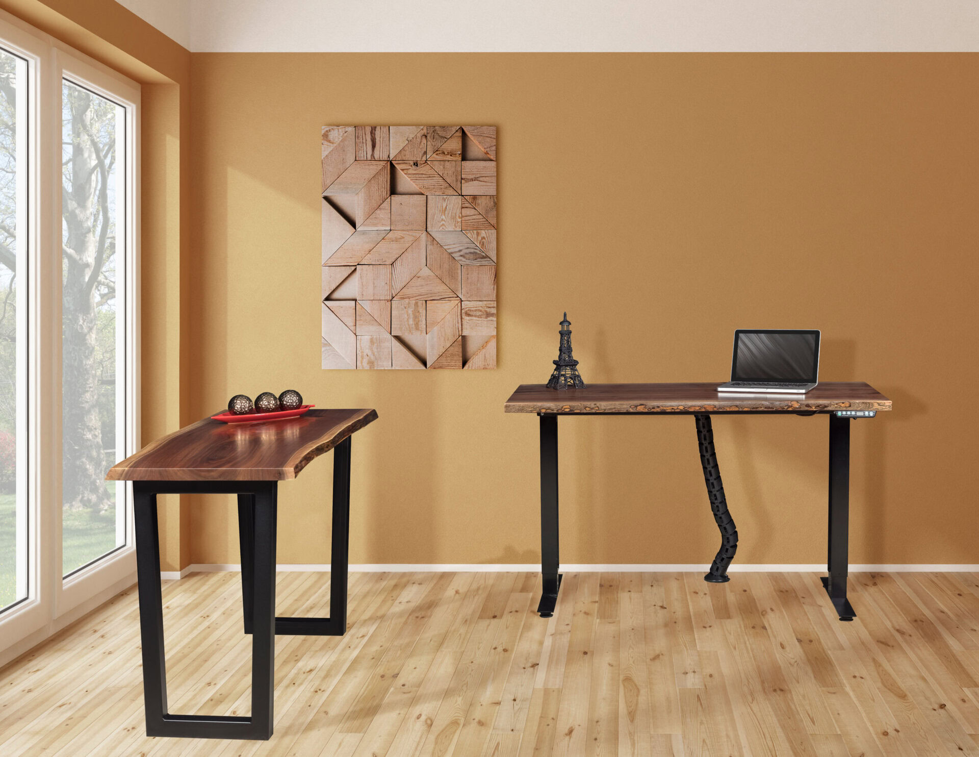 The Adona Writing Table starts with a 1-inch-thick solid hardwood top or an optional 1 3/8-inch live edge top (shown). Our Amish cabinetmakers attach the top to a sleek metal base. The result? A trendy table with an industrial/retro vibe. This makes the table a great choice for any trendy home or apartment. Ready to order? Click the “Customize this product” button below. Then, fill out the open (blank) fields. Or call 877-357-2106 today.