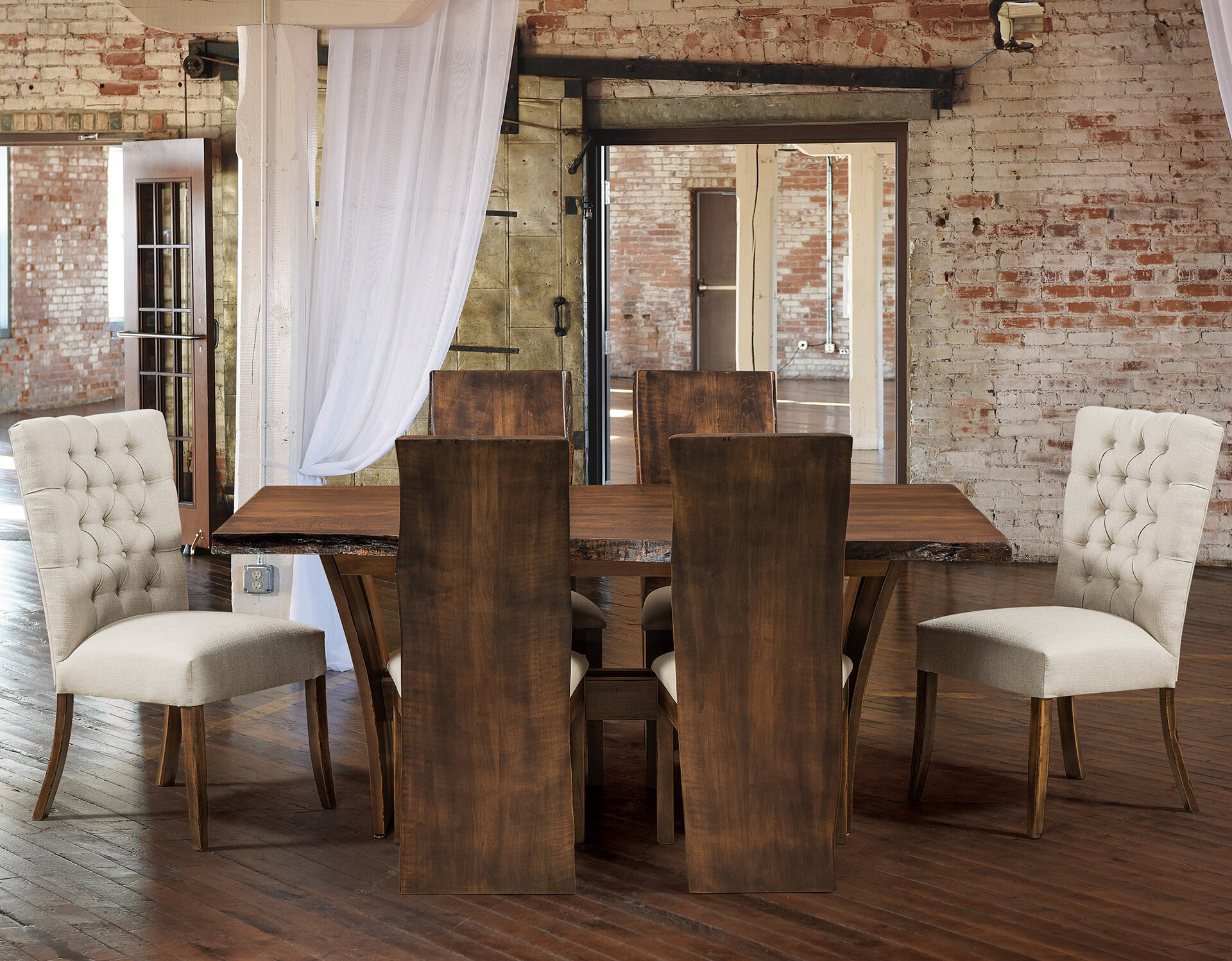 Tufted fabric seat, beautiful wooden legs, and solid hardwood construction set the Alana Chair apart as your chair of choice for your upscale dining room. To make your dining room even more impressive – and comfortable – you can choose a combination of Alana side chairs and armchairs.
