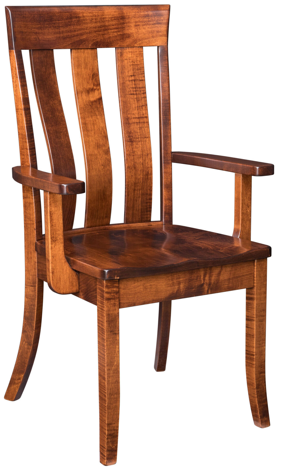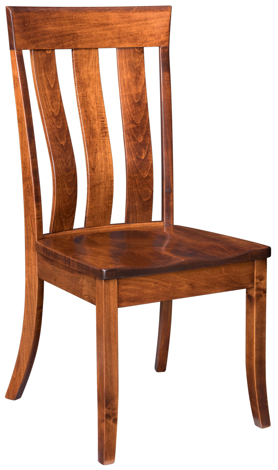 With its wide, curved slats and tapered legs, the Alexander Hardwood Chair makes an elegant statement. Imagine this finely-crafted chair in your dining room! The curved slats provide great lumbar support. While the scoop seat enhances comfort. And for even more comfort, request an upholstered seat finished in fabric or leather. Also, you can order your set of chairs in any combination of side chairs and armchairs. Amish cabinetmakers — the best in the Midwest — build the chair. And they use top hardwoods like cherry, oak and maple. So, it’s no surprise that the chair is sturdy and heirloom-quality! Ready to order? Click the “Customize this product” button below. Then, fill out the customization fields. Or call 877-357-2106.