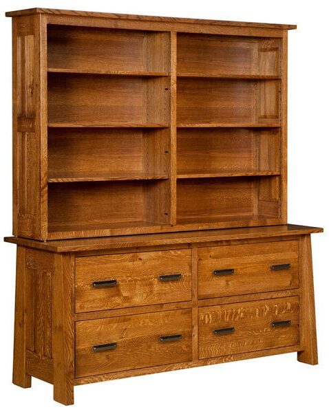 With its traditional Mission elements, the Amish Freemont Mission Credenza adds a sense of command to your home office. Check out the flat drawer fronts with black pull hardware plus the hefty, tapered corner posts. What a great complement to your desk! The drawers open full-extension. So, you will enjoy easy access to your hanging files and office supplies – even those at the back of the drawers. Need even more storage space? You can add a Freemont topper for your credenza. Amish cabinetmakers – the best in the Midwest – build the credenza. And they use top hardwoods like quarter-sawn white oak (shown with Michael’s Cherry stain). No wonder the piece is so great-looking, sturdy and heirloom-quality! Ready to order? Click the “Customize this product” button below. Then, fill out the customization fields. Or call 877-357-2106.