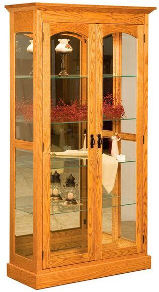 The classic design of the Amish Tall Mission Curio features glass shelves. Shown in Oak.