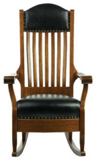 The Auntie’s Wide Rocker has a padded seat and headrest. The rocker has a slatted back that is steam bent for comfort. The solid wood arms are designed for optimal support. A nail trim accents the seat and headrest. Also, an optional footstool is available. Pad the rocker out of fabric or leather to fit any decor. Customize the solid wood frame with a variety of wood and stain choices.