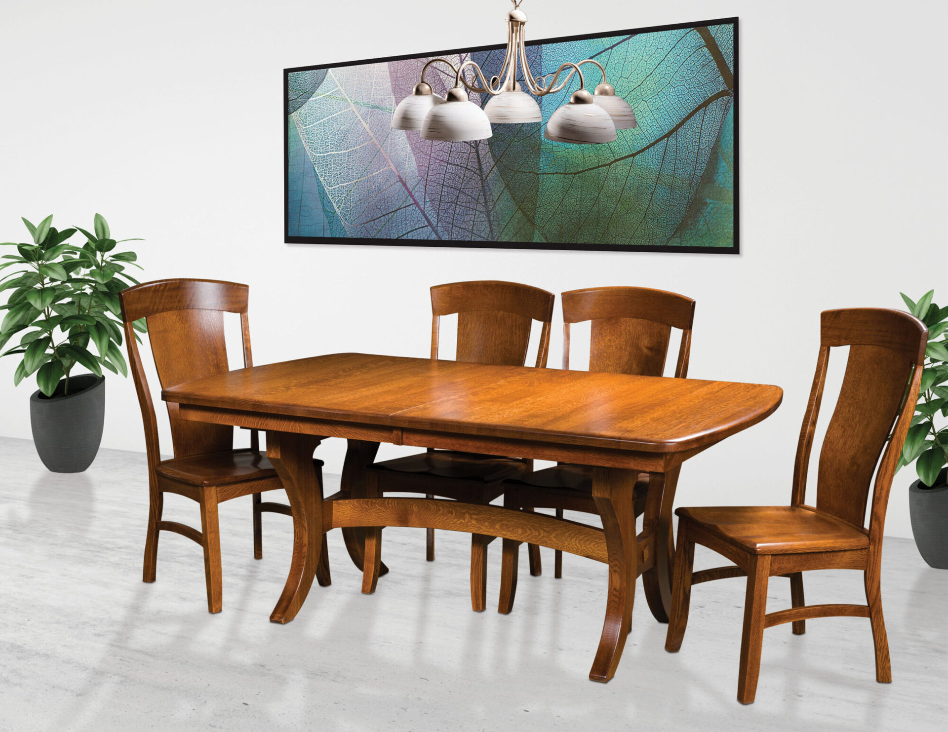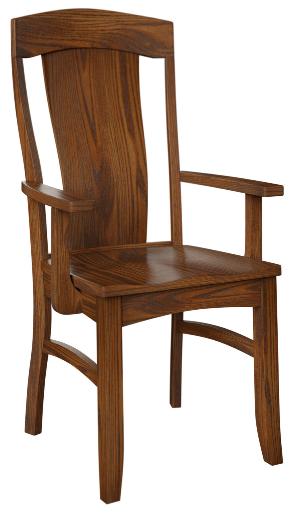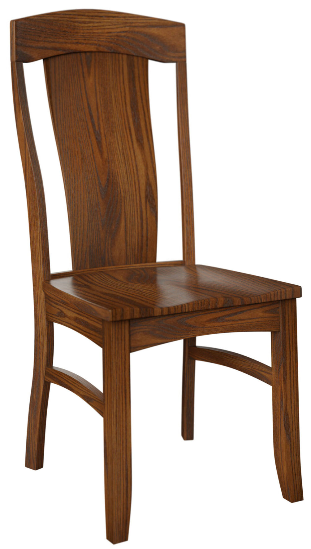 The wide, tapered slat plus the arched top and curved stretchers down below say everything about the Bailey Dining Chair. It is elegant, comfortable and durable. The curved slat provides great back support. While the saddle scoop seat enhances comfort. For even more comfort, request an upholstered seat, finished in fabric or leather. Also, you can order your set of chairs in any combination of side chairs and armchairs. Amish cabinetmakers — the best in the Midwest — build the chair. And they use top hardwoods like cherry, oak and maple. So, it’s no surprise that the chair is sturdy and heirloom-quality! Ready to order? Click the “Customize this product” button below. Then, fill out the customization fields. Or call 877-357-2106.