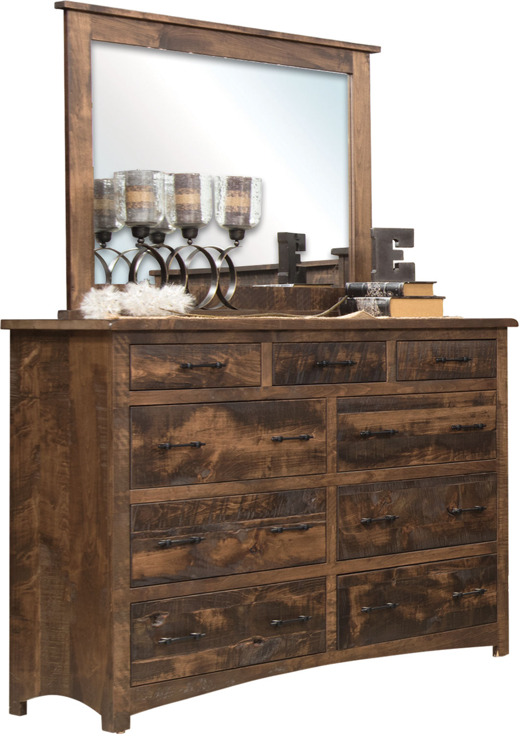 What’s so special about the Barn Floor Dresser with Mirror? The stately design of the Barn Floor style combines with legendary Amish cabinetmaking using rustic brown maple hardwood. Imagine this lovely piece in your bedroom! Amish cabinetmakers — the best in the Midwest — build the dresser. So, you’ll find visible saw marks, plus a striking woodgrain pattern. The nine storage drawers give you lots of storage space. And the dresser is so sturdy, it’s heirloom-quality! Ready to order? Click the “Customize this product” button below. Then, fill out the customization fields. Or call 877-357-2106.
