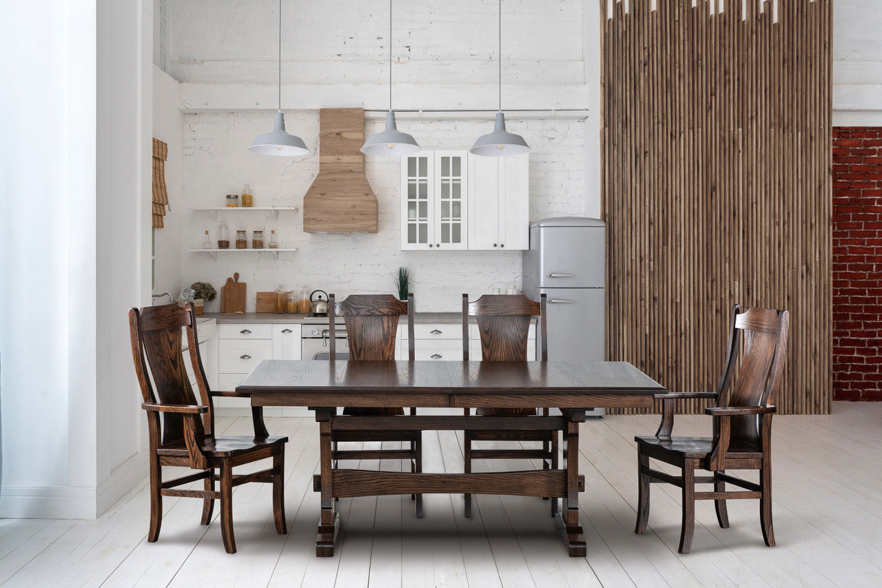 The Barrington Hardwood Chair is the epitome of upscale dining room chairs. Check out its wide backrest, graceful curves and Hoosier Special Burnished Stain. The wide, curved backrest provides great lumbar support. While the saddle scoop seat enhances comfort. For even more comfort, request an upholstered seat, finished in fabric or leather. Also, you can order your set of chairs in any combination of side chairs and armchairs. Amish cabinetmakers — the best in the Midwest — build the chair. And they use top hardwoods like quarter-sawn white oak (shown). So, it’s no surprise that the chair is sturdy and heirloom-quality! Ready to order? Click the “Customize this product” button below. Then, fill out the customization fields. Or call 877-357-2106.