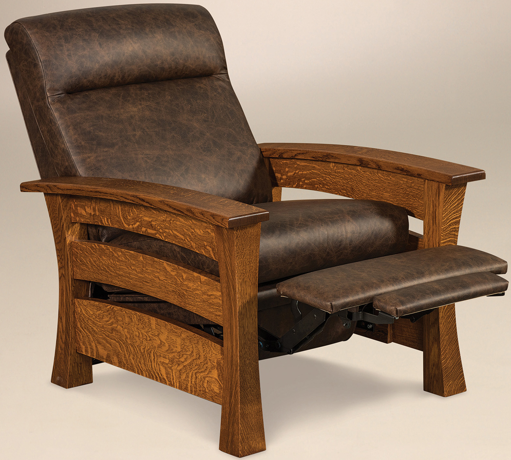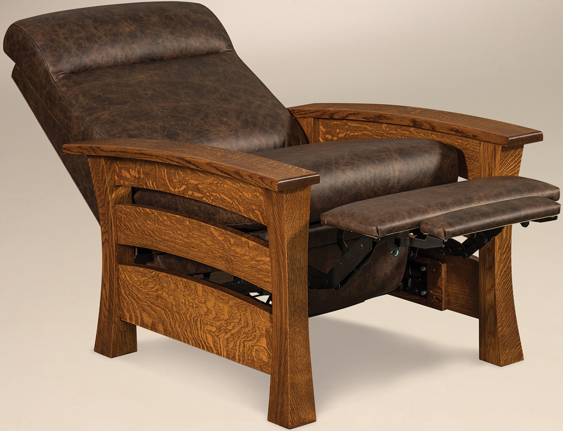 The slightly bowed arms, wide horizontal slats, and unique flared legs attest to the superior Amish construction of the Barrington Small Recliner. The best cabinetmakers in the Midwest build this recliner. Amish men. Also, these artisans use quality regional hardwoods. Like oak, cherry, and maple. No wonder the recliner is so sturdy and durable! Take proper care. And it should stay in great shape for future generations to enjoy.