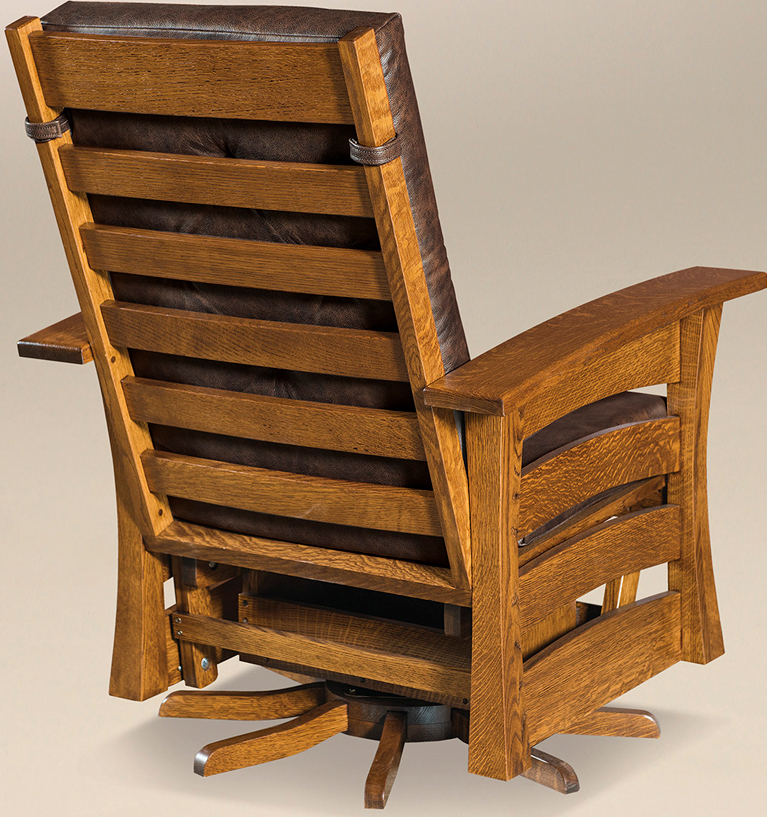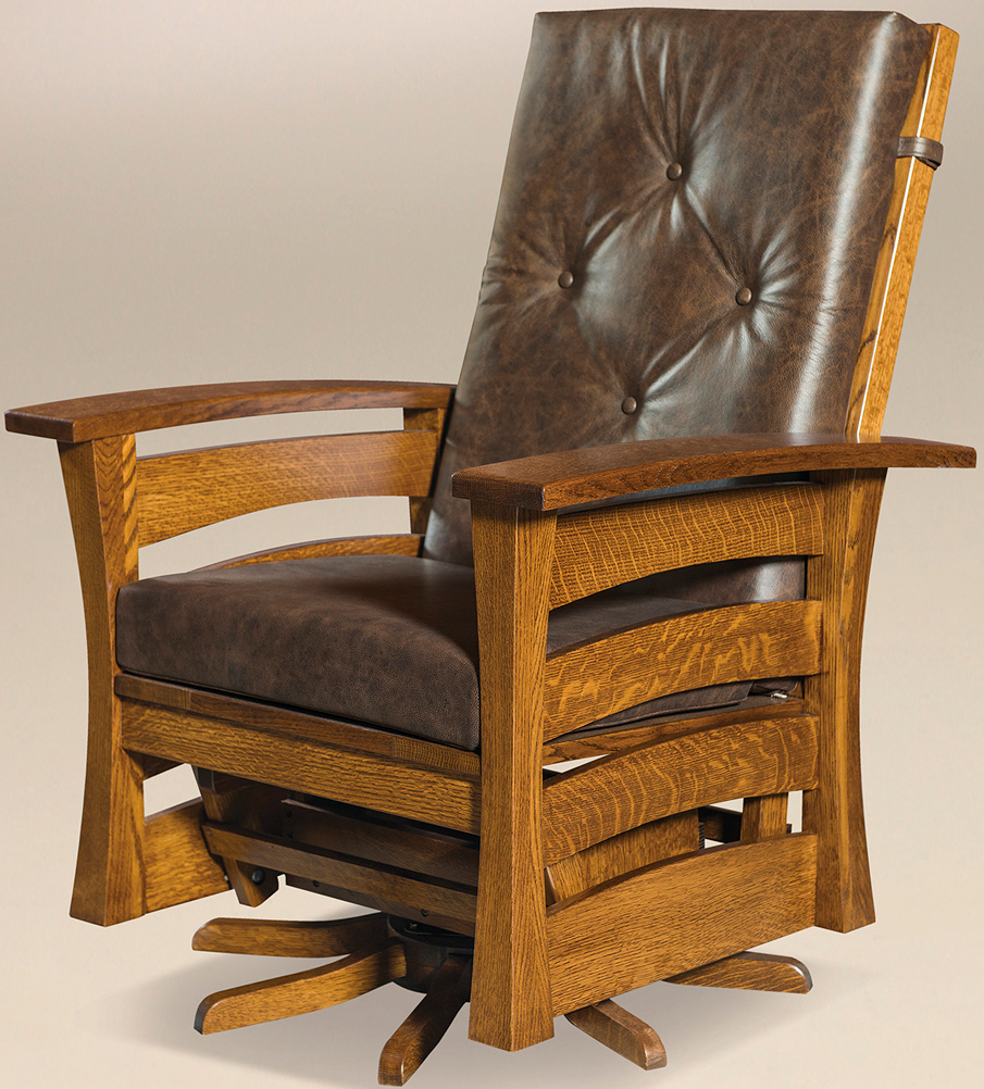 You can order the Barrington Swiveling Glider as shown or unfinished. Or, we will build it to your specs. Just tell us your preferences. Such as the wood species and finish. Also, you can choose genuine full-hide leather or faux leather. Or, we have hundreds of fabrics to choose from. Therefore creating the perfect furniture piece for your home. One that matches your taste and style.