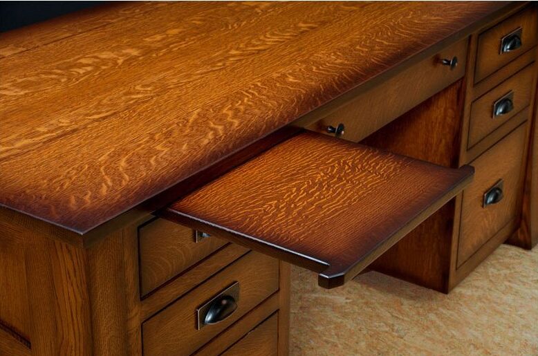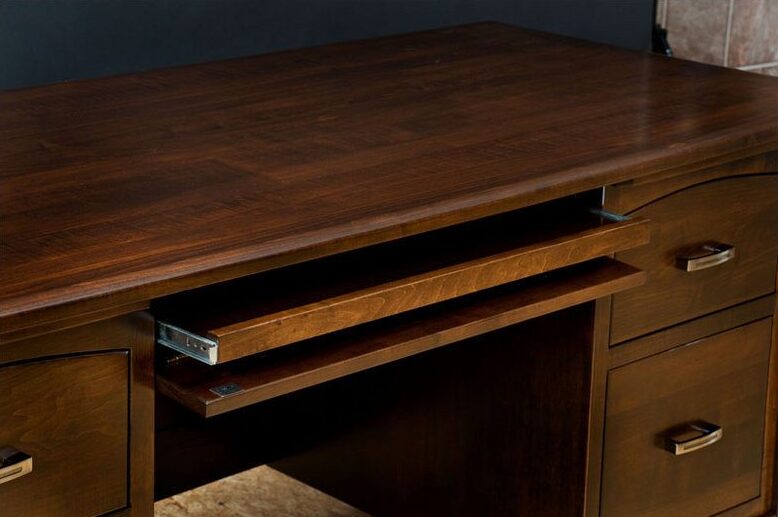 The Belmont Hardwood Executive Desk is handcrafted by fine Amish woodworkers. In addition, the desk features beautiful woodwork with a simple design and ample storage space. It is shown here in rustic cherry but can be customized in your selection of hardwood and stain color to match your family room style and decor.