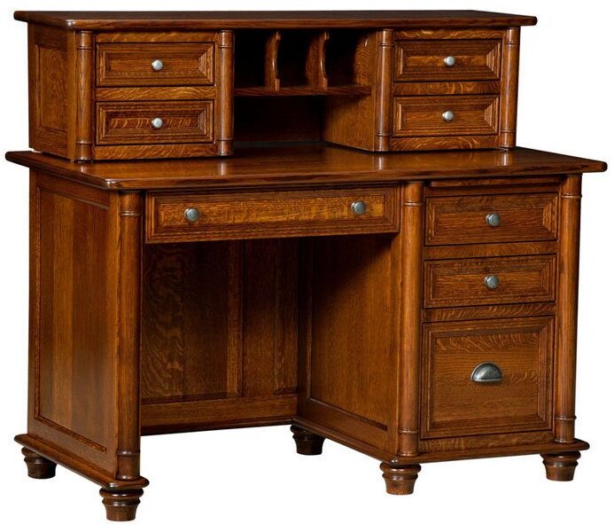 The Belmont Hardwood Student Desk brings a classic look, practical features and legendary Amish cabinetmaking into your home. So, it makes the perfect workstation for students and grownups alike. Indeed, the carved posts and feet, recessed panels and rustic hardware give the piece a sense of command. The drawers open full-extension for easy access to all the items inside. Also, you get a file drawer, pencil drawer plus two office supply drawers. What’s more, we build a writing pullout to expand your desktop space. Need even more room? You can request a matching desk topper. Amish cabinetmakers – the best in the Midwest — build the desk. And they use top hardwoods like oak and cherry. No wonder the piece is so sturdy and heirloom-quality! Ready to order? Click the “Customize this product” button below. Then, fill out the customizing fields. Or call 877-357-2106.