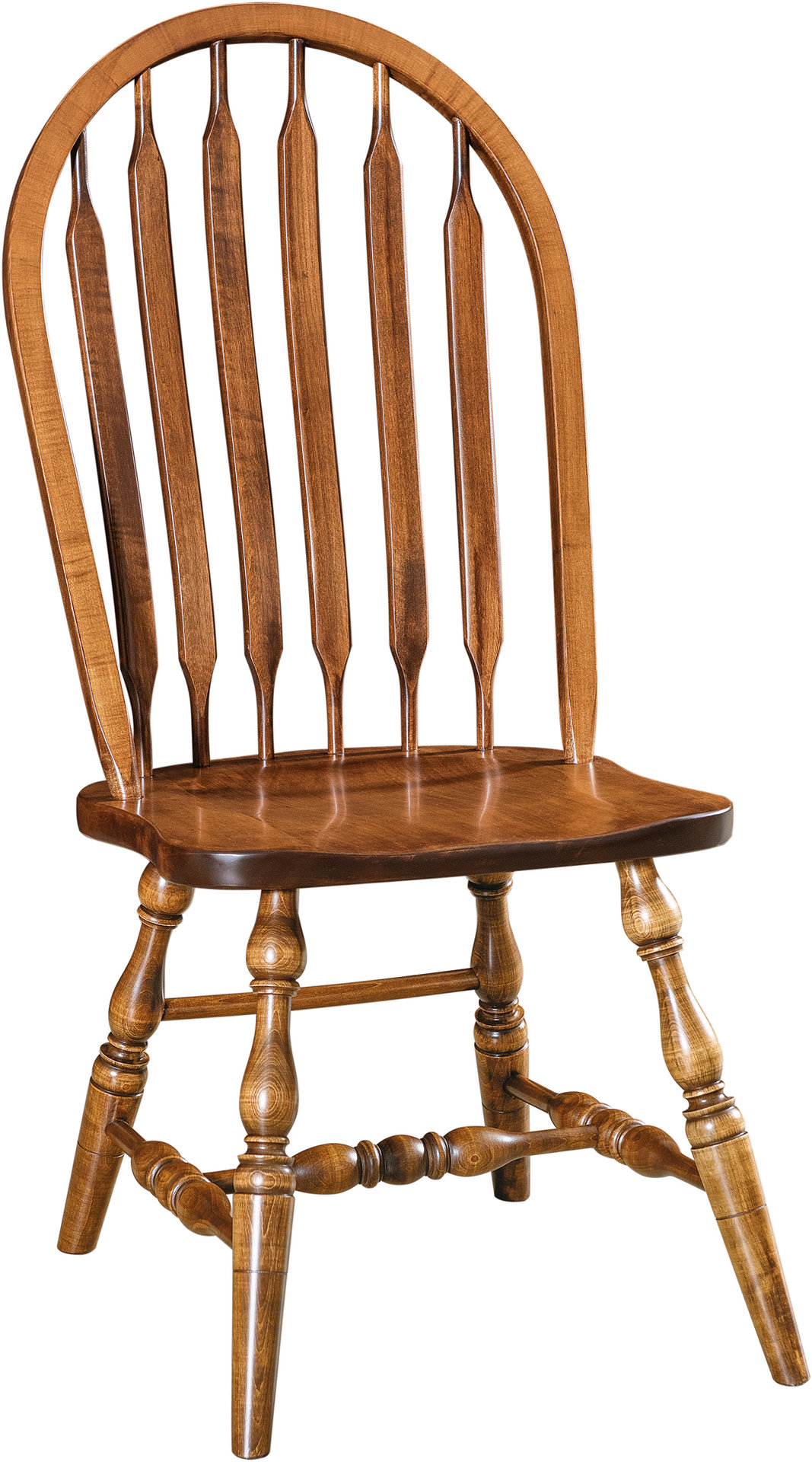 With its bowed back, wide ‘paddle’ spindles and solid hardwood custom construction, the Bent Paddle Dining Chair brings the charm of a traditional American farmhouse to your upscale dining room. Our Amish craftsmen make the slats – paddles – wider and curved for enhanced back support. Notice also the meticulously crafted turned legs. The armchair version of the Bent Paddle Dining Chair makes a nice complement – such as at both ends of the table.