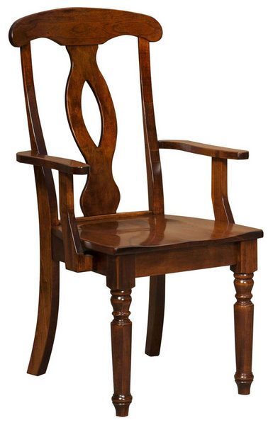 The Berkshire Wood Dining Chair will bring a classic furniture look to your dining room. Check out the fiddleback backrest design and turned front legs. Plus the curved backrest and carved back legs. The curved slat provides great lumbar support. While the scoop seat enhances comfort. For even more comfort, request an upholstered seat, finished in fabric or leather. Also, you can order your set of chairs in any combination of side chairs and armchairs. Amish cabinetmakers — the best in the Midwest — build the chair. And they use top hardwoods like maple, oak and cherry (shown with Michael’s Cherry stain). No wonder the chair is so beautiful, sturdy and heirloom-quality! Ready to order? Click the “Customize this product” button below. Then, fill out the customizing fields. Or call 877-357-2106.