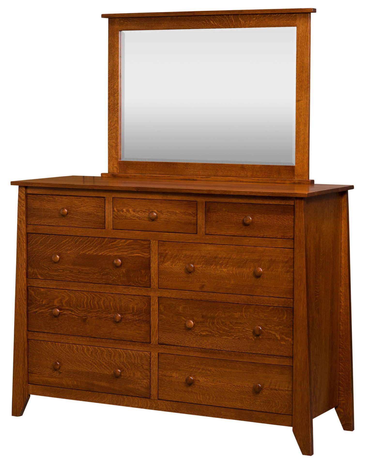 With its flush drawers, round wooden hardware and flared legs, the Berwick Style Dresser with Mirror features the simple elegance of the Shaker style. Which means you’ll love to see this beautiful piece of fine furniture in your master bedroom! The nine drawers come with dovetail joints, renown for strength. Also, Amish cabinetmakers – the best in the Midwest — handcraft the dresser. And they use top hardwoods such as oak, maple, hickory and cherry. No wonder the dresser is so sturdy. Durable. Also heirloom-quality! Plain mirror is standard; beveled mirror is available. Ready to order? Click the “Customize this product” button below. Then, complete the customization fields. Or call 877-357-2106.