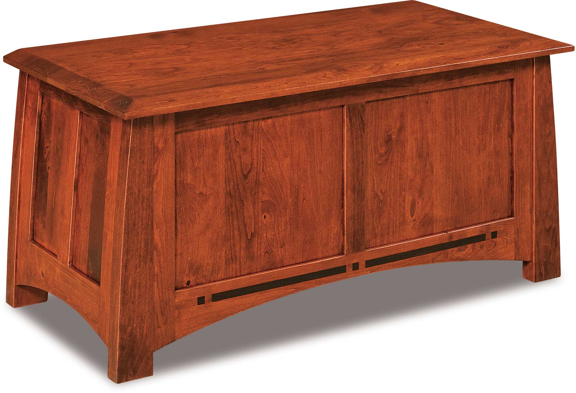 The best cabinetmakers in the Midwest meticulously handcraft each Boulder Creek Blanket Chest. Also, these Amish artisans use regional hardwoods. Like maple, elm, hickory and oak. As a result, you’ll find the blanket chest to be incredibly strong and long-lasting. In fact, with proper care, it should store your family’s treasures for generations to come.