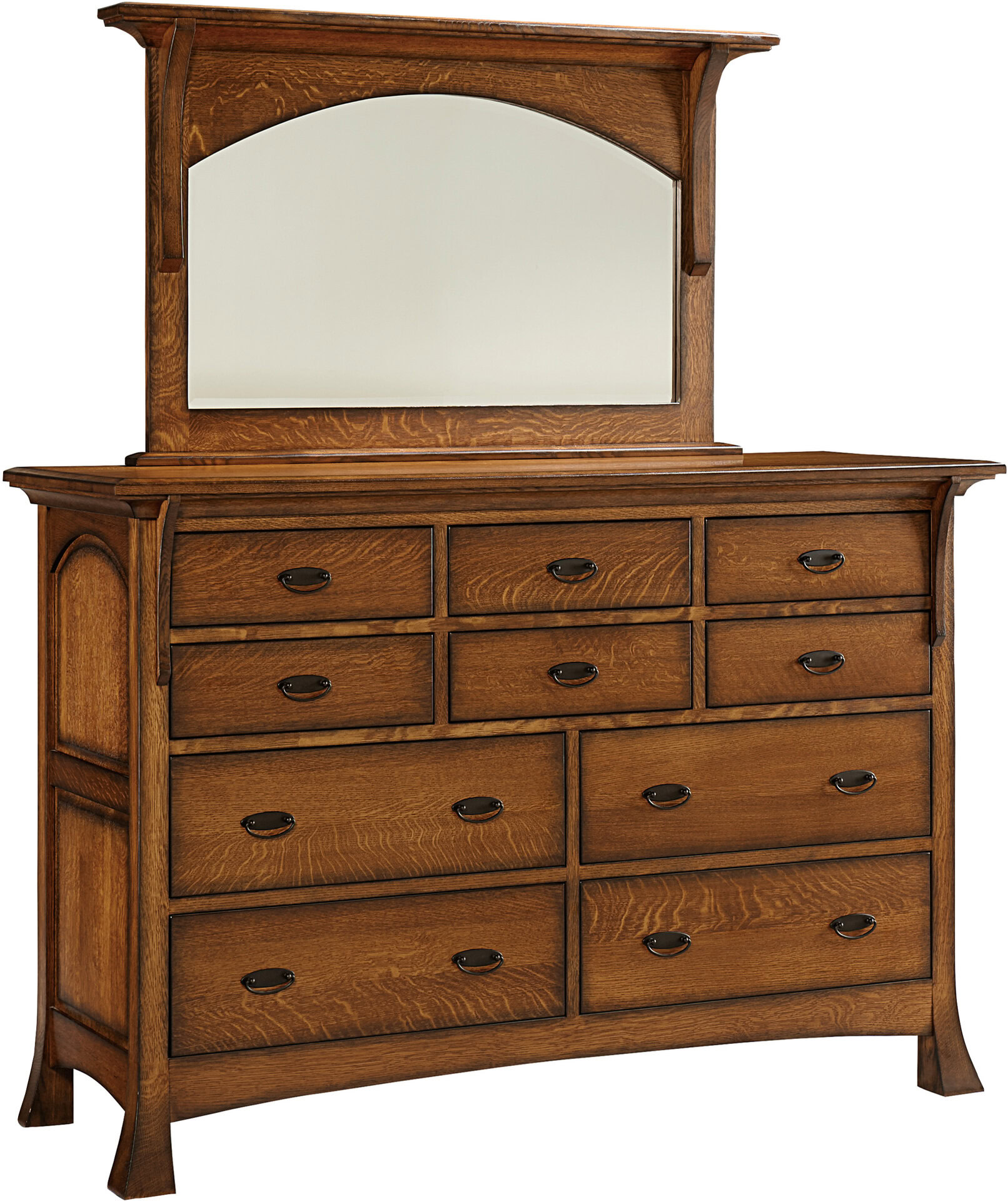 Elegantly flared posts accent the Breckenridge 10 Drawer Dresser. The Breckenridge Dresser is available by itself or paired with the Dresser Mirror as shown. All of the Breckenridge Dresser drawers can be upgraded to include the Soft Close Drawer Option.