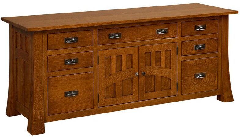 Make your home office a place of efficiency, comfort and style. Choose the Bridgefort Mission Hardwood Credenza & Topper. It provides room for your hanging files, office supplies, current work documents, books, office supplies – and even decorative elements. In fact, the topper comes with adjustable shelves and adjustable lights. You can’t help being struck by the beauty of the arch design in the mullion glass doors up top and the panel doors down below. Amish cabinetmakers – the best in the Midwest – build the credenza and topper. And they use top hardwoods like quarter-sawn white oak (shown with Michael’s Cherry stain). No wonder the unit is so great-looking, sturdy and heirloom-quality! Ready to order? Click the “Customize this product” button below. Then, fill out the customization fields. Or call 877-357-2106.