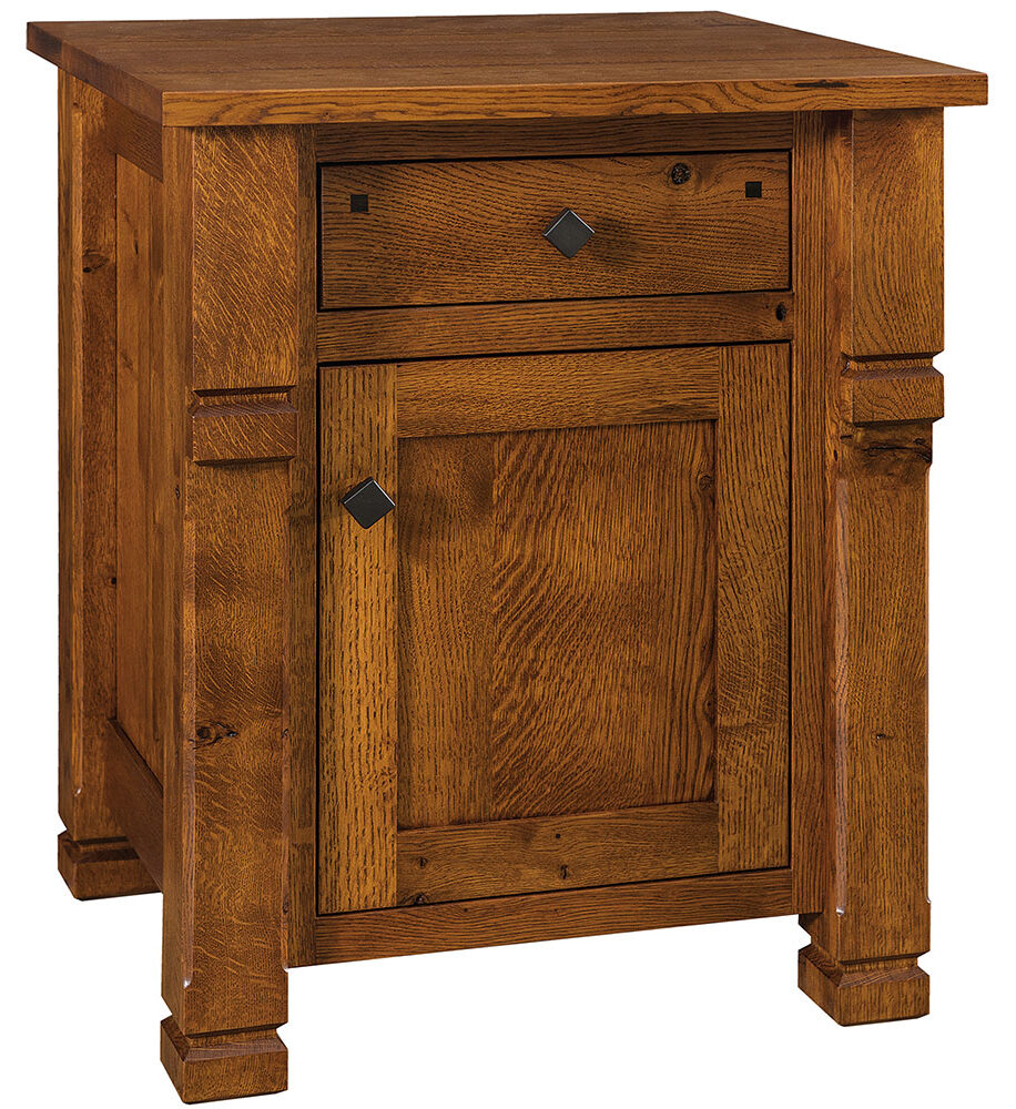 The Brockport Nightstand is shown here with One Drawer and One Door. But this is just one of the many possibilities you can order. Since all of our furniture is created upon ordering, you’ll always find exactly what you need. Also featured here is the Open Nightstand with One Drawer.