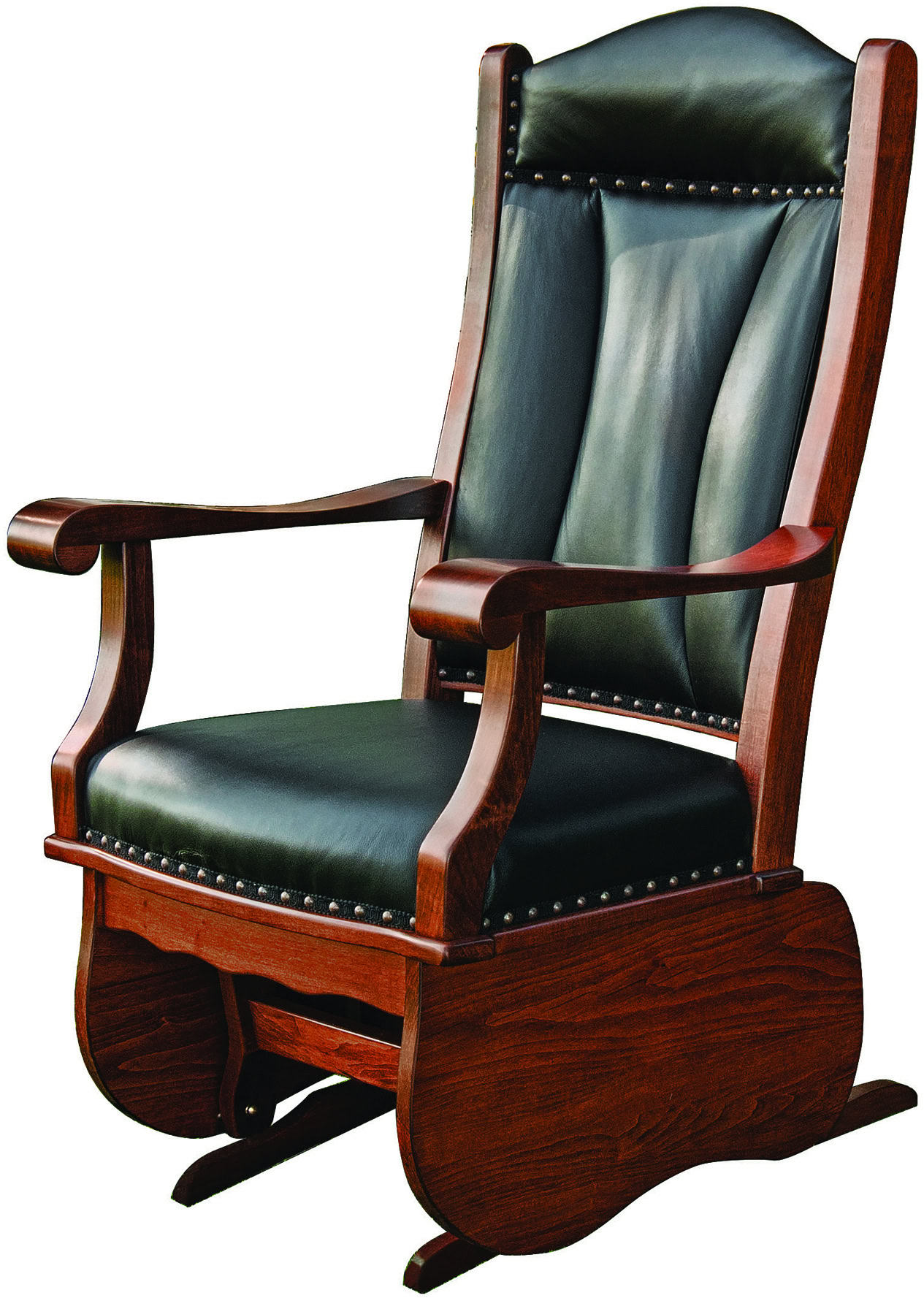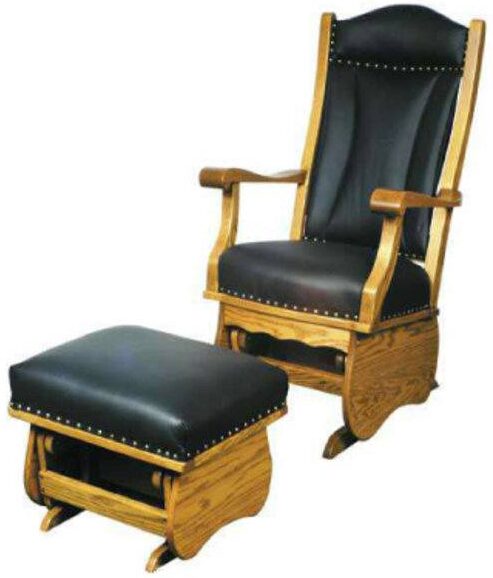 The Buckeye Glider has a padded seat and headrest. The glider has a padded back that is plush with comfort. The solid wood arms are designed for optimal support. A nail trim accents the seat and headrest. The glider is available with an optional swivel base. Also, a glide footstool is available with the chair. Pad the glider out of fabric or leather to fit any decor. Customize the solid wood frame with a variety of wood and stain choices.