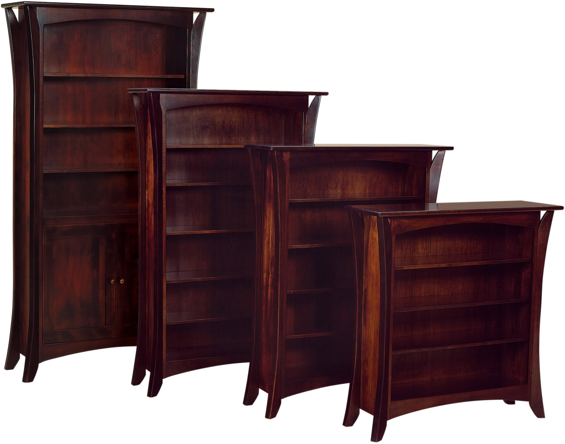 The Caledonia Bookcase Collection fuses modern accents and thoughtful design. The sleek curved legs and fine details of the hardwood bookcases offer a modern style to these pieces. In addition, the Caledonia Bookcase Collection boasts adjustable solid wood shelving to help organize your home office. The 84 inch book case also has hardwood cabinets which reveal two shelves for additional storage. With a variety of size options, you can choose the bookcase that best suits your needs and your space.