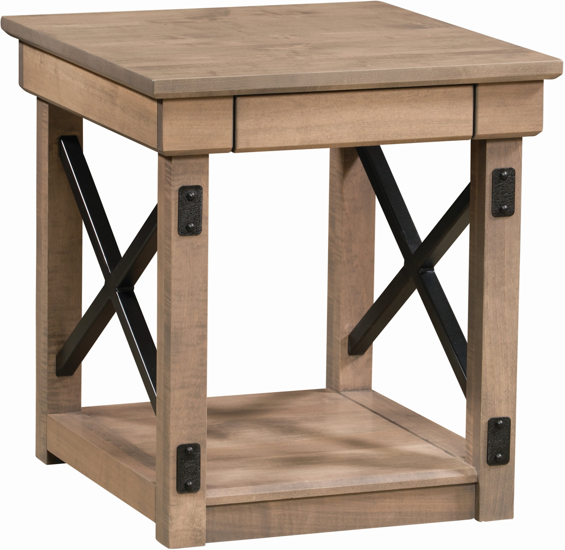 The Cambridge Occasional Table Collection is a perfect choice for your home! This set includes the Cambridge Collection coffee, sofa and end tables. You are sure to love the powder-coated steal crossbars that extend through to the legs. It really adds character to this piece. Not only will you love the style but also the craftsmanship. Our Amish artisans make this set entirely out of solid hardwoods. Additionally, they add extras like the full-extension drawer. This means you can pull the entire drawer out and see what is all the way in the back. It is a great spot to put remote controls, pens and notebooks when not in use.