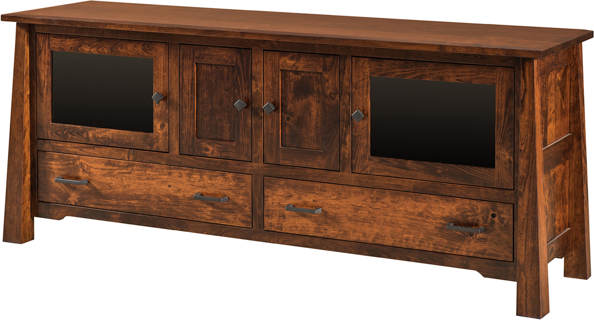 The Cambridge Plasma TV Stand is available in four different sizes. The beautiful Amish craftsman details are showcased in this beautiful piece. Since there are plenty of drawers and doors you will have storage space for all your media components.
