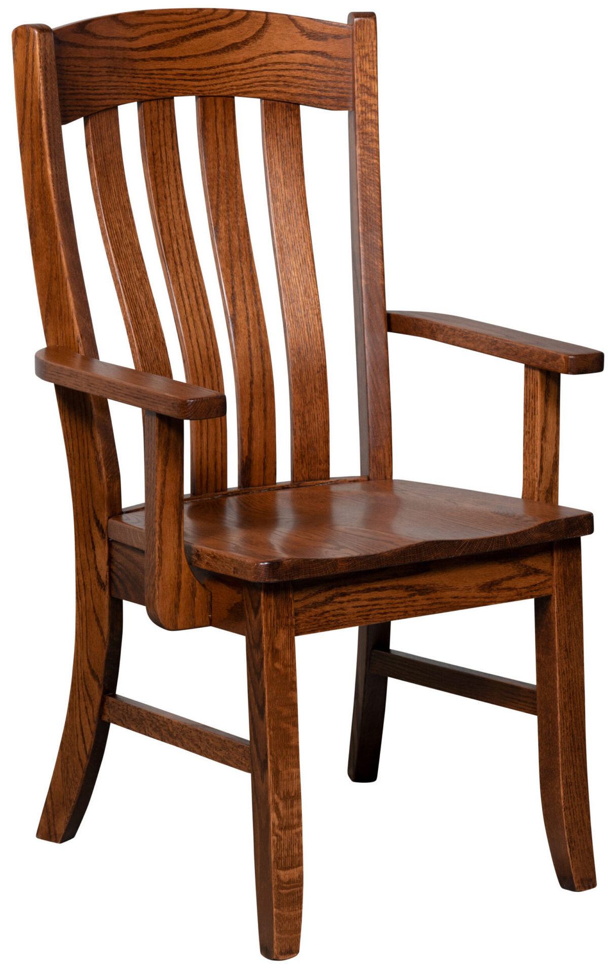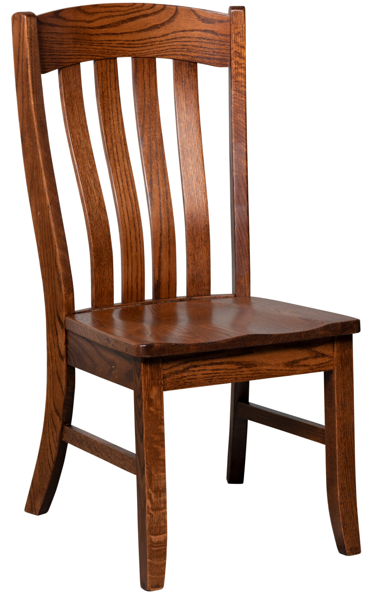 With its arched-top backrest and steam-bent slats, the Carlton Dining Chair portrays a sophisticated look and feel. One that’s perfect for your dining room. The curved slats offer lumbar support. While the saddle scoop seat enhances comfort. Want more comfort? Request an upholstered seat finished in fabric or leather. Also, you can order your set of chairs with your favorite combination of side chairs and armchairs. Amish cabinetmakers — the best in the Midwest — build the chair. And they use top hardwoods like maple, cherry and oak (shown with Light Asbury Stain). So, it’s no surprise that the chair is heirloom-quality! Ready to order? Click the “Customize this product” button below. Then, fill out the customizing fields. Or call 877-357-2106.
