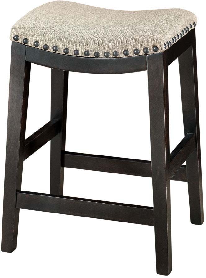 The saddle-like cushioned seat of the Cartel Barstool is adorned with 5/8-inch Antique Pearl Nailheads. So the seat is as comfortable as it’s attractive! We offer the barstool in heights of 24 and 30 inches. This makes the barstool perfect for your kitchen counter, in-home bar or game room. The seat shown has 4-130 Oatmeal Fabric. Prefer another look? We have numerous fabrics – plus leather – to choose from. Amish cabinetmakers handcraft each Cartel Barstool. Also, they use top hardwoods. Like oak, cherry and brown maple (shown with FC 11047 Ebony Stain). What’s more, our craftsmen use sturdy mortise and tenon joints. No wonder the barstool is heirloom-quality! To order, click the “Customize this product” button below. Then, complete the customization fields. Or call 877-357-2106.