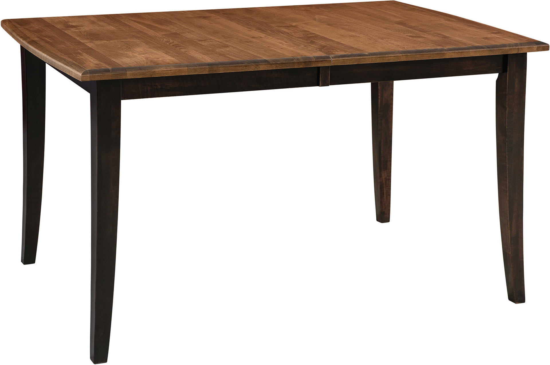 The Chelsea Style Leg Table delights the senses with its simple, Shaker-inspired elegance. Notice the splayed and tapered legs. Plus the 1-inch solid wood top with partial thumbnail edge. You can order the table in widths of 36 or 42 inches and lengths of 48 or 54 inches. Expecting company? The non-geared wood slide makes it easy to extend the table by inserting leaves. So, you can get the table at just the right size. Amish cabinetmakers – the best in the Midwest – build the table. And they use top hardwoods like cherry, oak and brown maple (shown with Almond stain on top and an Onyx stain base). No wonder the table is so sturdy and heirloom-quality! Ready to order? Click the “Customize this product” button below. Then, fill out the customizing fields. Or call 877-357-2106.