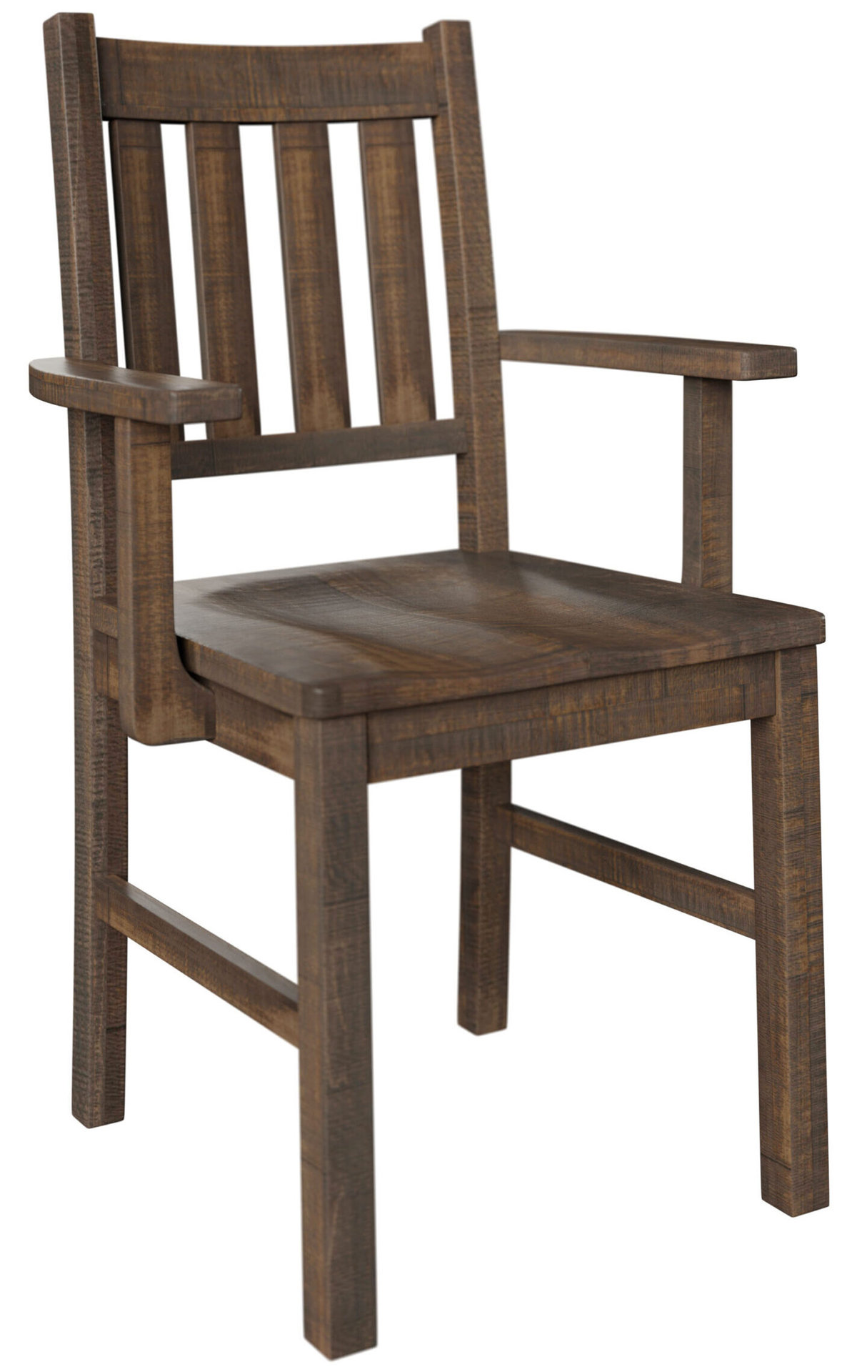 The Cheyenne Dining Chair combines the stately vibe of the Mission style with legendary Amish cabinetry. This results in an upscale chair with a rustic vibe. The slatted backrest and saddle scoop seat enhance comfort. Want even more comfort? Request an upholstered seat finished in fabric or leather. Also, you can order your set of chairs with your favorite combination of side chairs and armchairs. Amish cabinetmakers — the best in the Midwest — build the chair. And they use top hardwoods like rough-sawn wormy maple (shown with FC 42000-2 Almond Finish). No wonder the chair is heirloom-quality! Ready to order? Click the “Customize this product” button below. Then, fill out the customizing fields. Or call 877-357-2106.