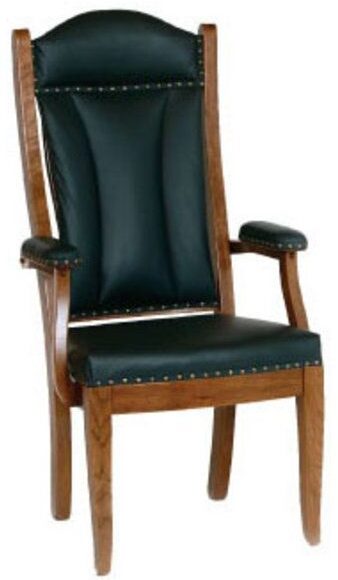 The Client Arm Chair has a padded seat and headrest. The stationary chair has a padded back that is plush with comfort. The padded arms are designed for optimal support. A nail trim accents the seat and headrest. Also, a matching desk chair with casters is available to finish the set. Pad the chair out of fabric or leather to fit any decor. Customize the solid wood frame with a variety of wood and stain choices.