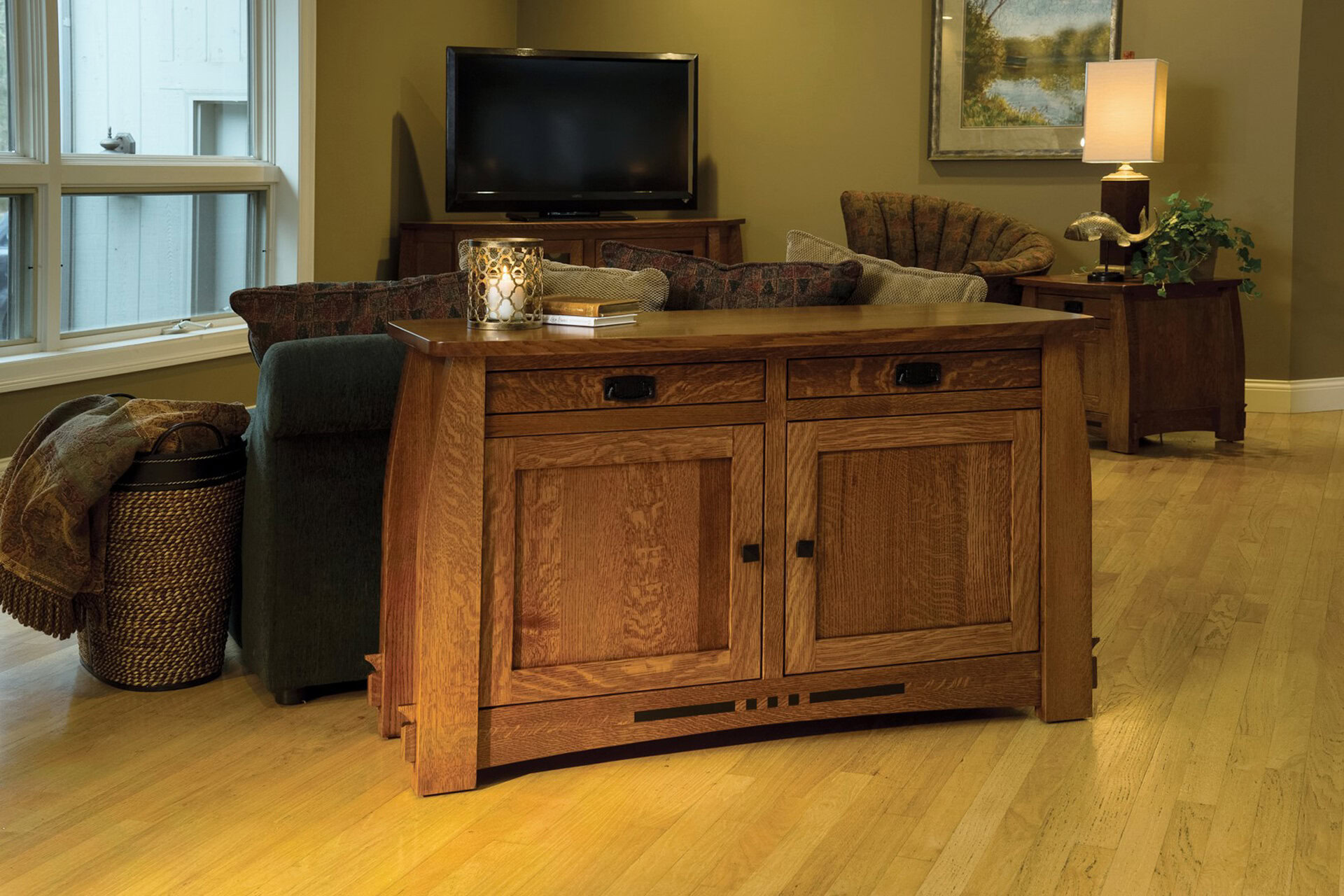 The Colebrook Living Room Collection has the same stunning features as all of our other Colebrook Furniture pieces. This collection includes the Colebrook end table, coffee table, sofa table, and corner TV stand. The exposed tenons, ebony inlays and rounded corners all help this set stand out. In addition to beauty, this set is both functional and quality-crafted. Add the optional lift-top on the coffee table or the drink pullout on the end table. Then, it instantly becomes even more useful. Certainly, you are sure to find your families sitting around these pieces often.