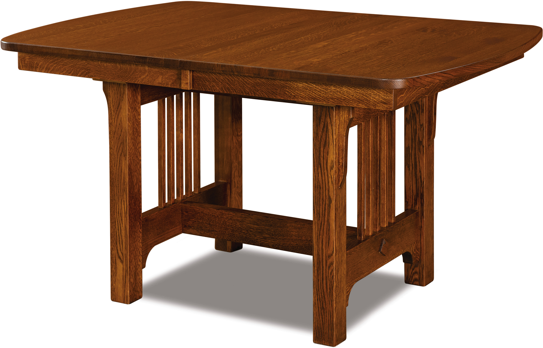 Looking for an elegant, superbly built dining table that occupies a smaller footprint? The Craftsman Mini Trestle Table should be at the top of your list. Because we give it beautiful wood slats and exposed tenon accents down below. Also, a 1-inch-thick solid hardwood top with soft-curved ends up above. The Craftsman Mini Trestle Table comes 36 inches wide and 48 or 54 inches long. What’s more, it accommodates up to three leaves. And self-stores two leaves. Amish cabinetmakers – the best in the Midwest – handcraft each table. Also, they use top hardwoods. Like maple, cherry, and quarter-sawn white oak (shown with Michael’s Cherry stain). So the table is heirloom-quality! To order, click the “Customize this product” button below. Then, complete the customization fields. Or call 877-357-2106.
