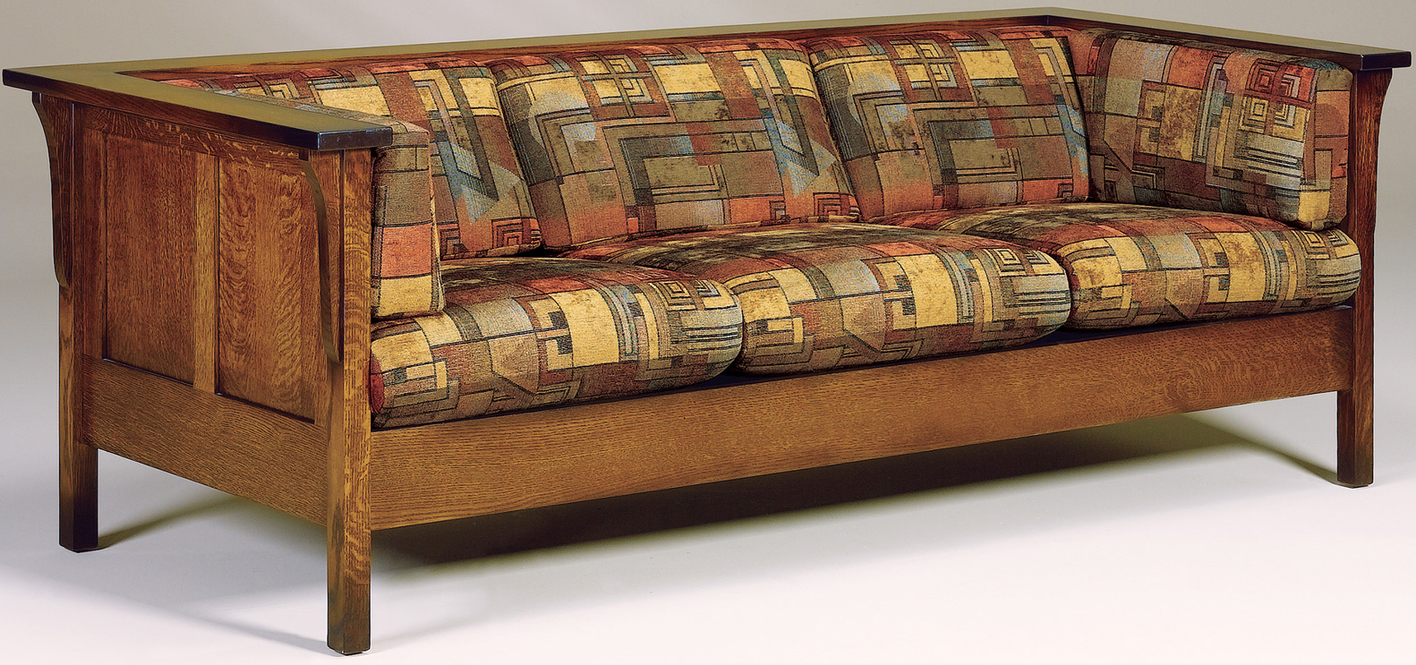 The beautiful reverse panel sides and back, plus the decorative corbels ensure that this Hardwood Panel Sofa looks great from every direction. And that is not surprising. Because the best cabinetmakers in the Midwest handcraft each sofa. These artisans are Amish craftsmen. Also, they use quality regional hardwoods. Such as oak, cherry, and maple. So the sofa is incredibly sturdy and durable. Take proper care. And it should last for generations to come.