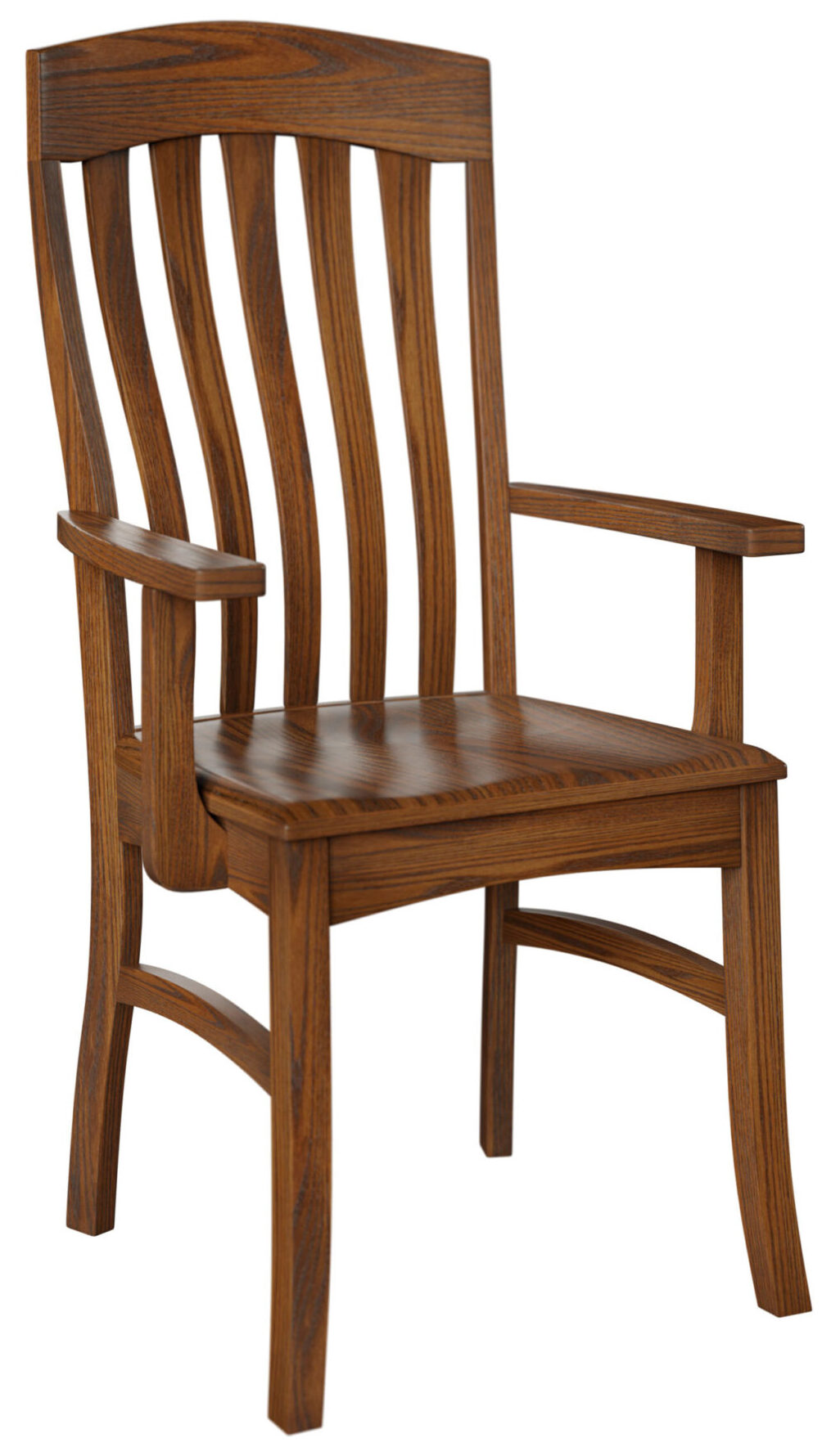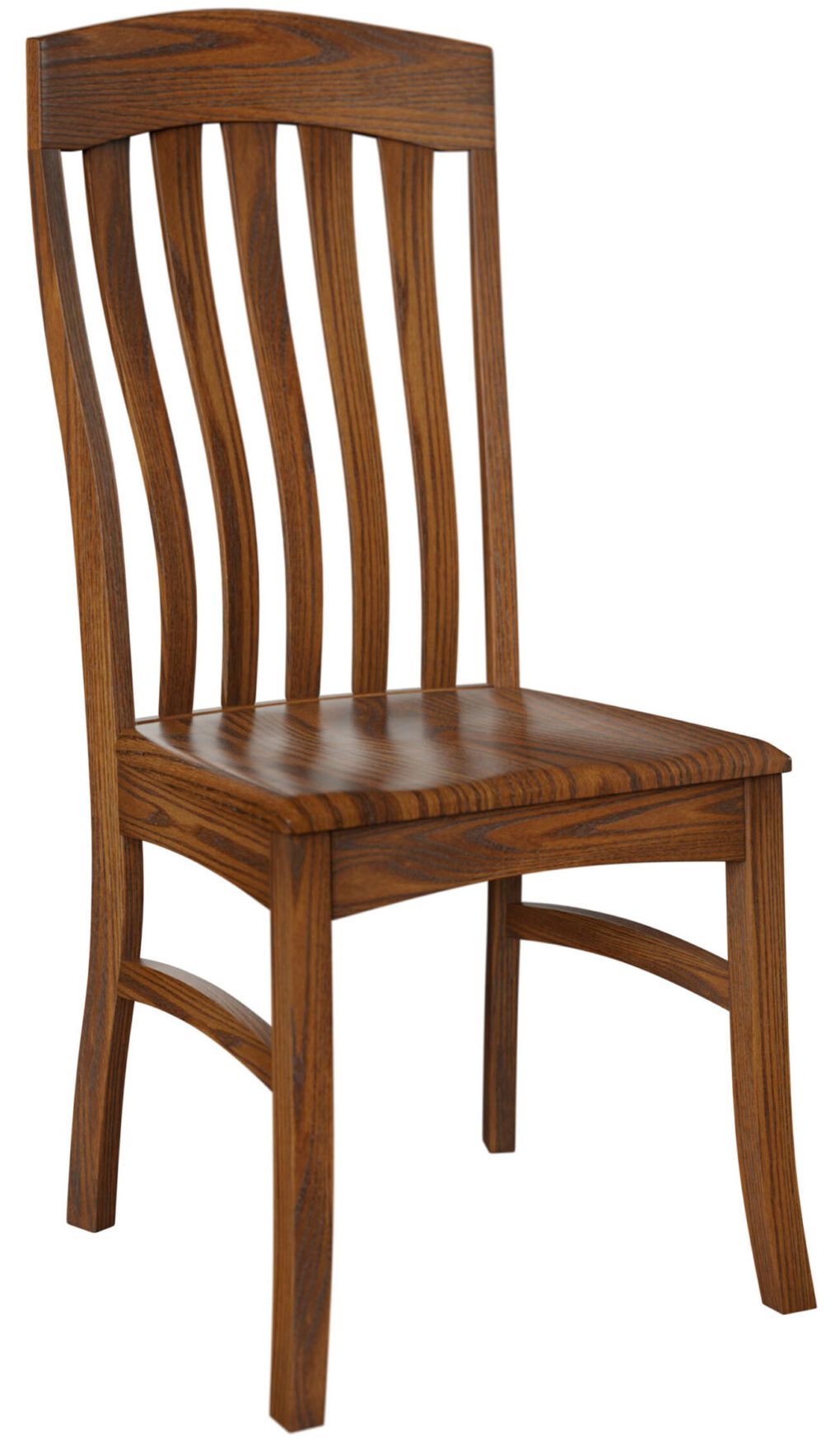With its arched backrest top and arched theme throughout, the Curry Dining Chair displays a look of distinction. Imagine a set of this chair around your dining table! The steam-bent slats provide good lumbar support. While the saddle scoop seat enhances comfort. For even more comfort, ask for an upholstered seat, finished in fabric or leather. Also, you can order your set of chairs with any combination of side chairs and armchairs. Amish cabinetmakers — the best in the Midwest — build the chair. And they use top hardwoods like cherry, maple and oak (shown with Light Asbury Stain). No wonder the chair is so sturdy and heirloom-quality! Ready to order? Click the “Customize this product” button below. Then, fill out the customization fields. Or call 877-357-2106.