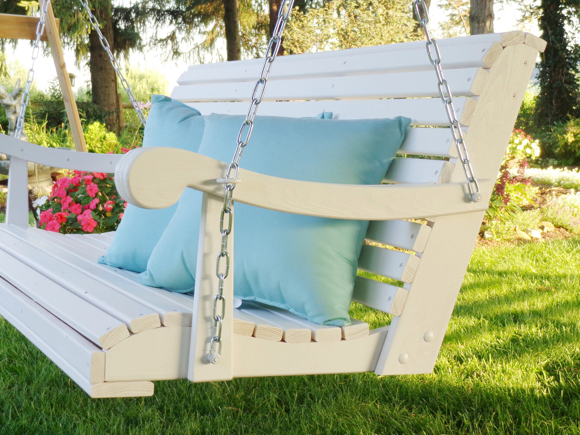 Skilled craftsmen constructed the Cypress Grandpa Swing with solid cypress and come with an adjustable swing chain. This sturdy swing will provide hours of relaxation on your front porch for years to come. With custom options available you can create the perfect swing for your home.