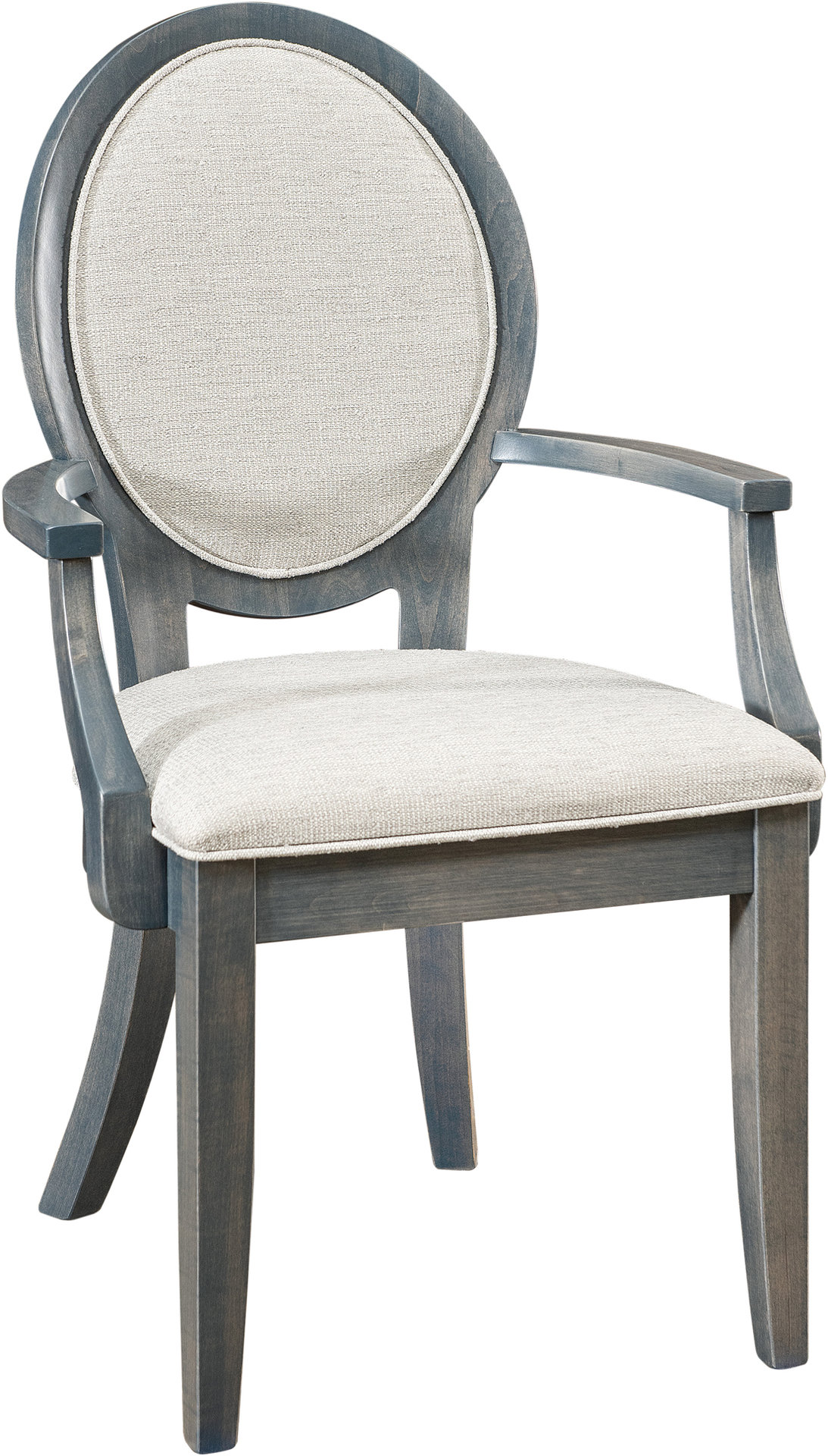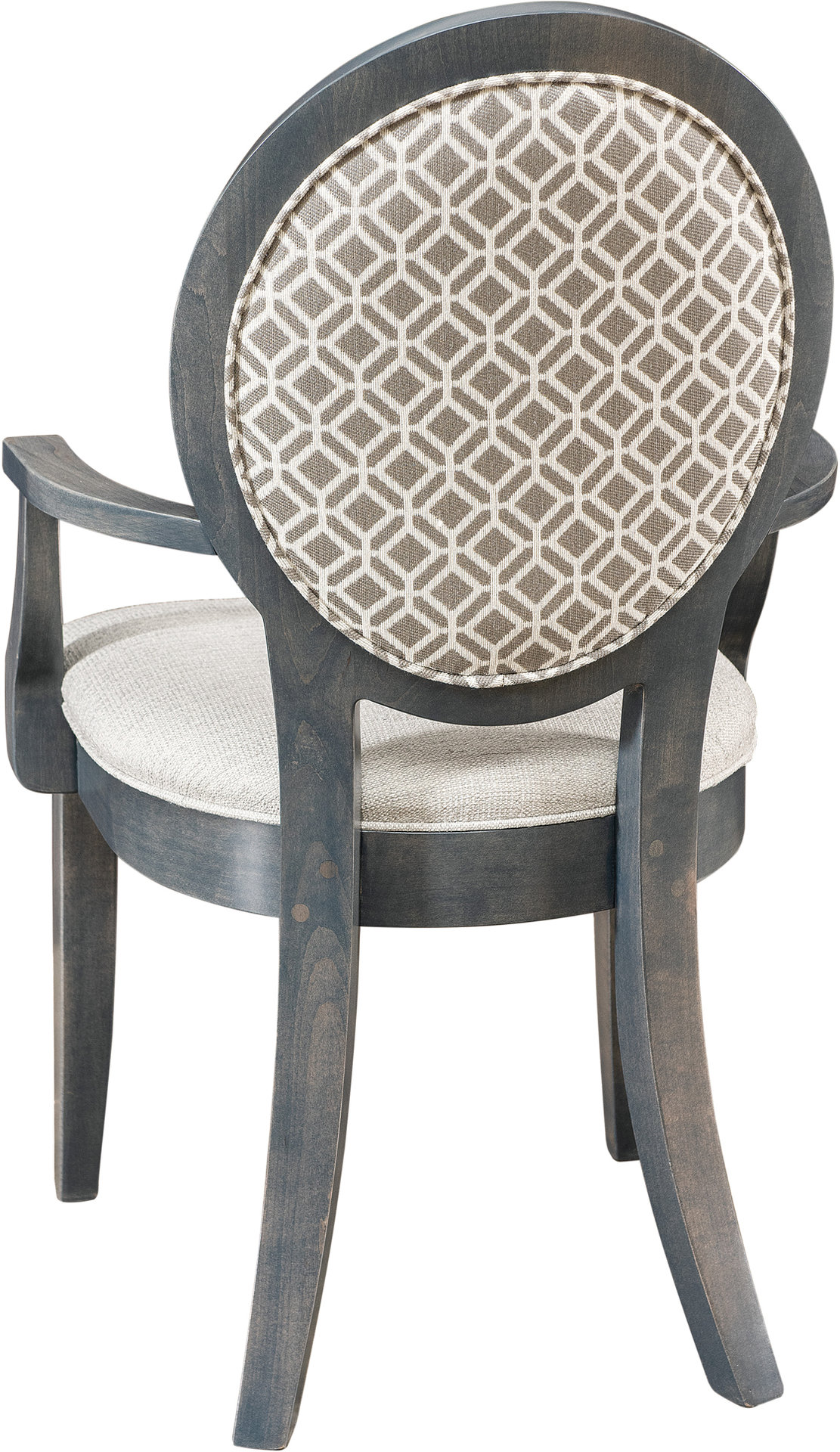 With its oval back, plush upholstery and attractive design, the Dawson Dining Chair is the perfect choice for any upscale dining room. We offer Dawson as an arm chair or a side chair. So you can surround your table with your favorite arm-and side-chair combination. Also, we offer wood, leather or fabric seats. And we have a plethora of leather and fabrics to choose from. We’re showing the chairs with C8-57 Coconut Fabric. The back has R1-54 Desert Fabric. Amish cabinetmakers – the best in the Midwest — handcraft each Dawson Dining Chair. Also, they use top hardwoods. So the chair is sturdy. Durable. Also heirloom-quality! To order, click the “Customize this product” button below. Then, complete the customization fields. Or call 877-357-2106.