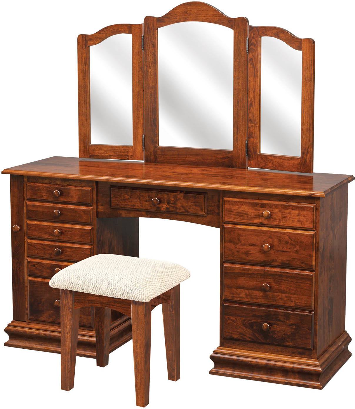 The Deluxe Clockbase Jewelry Dressing Table is an impressive bedroom vanity and offers ample jewelry storage. Our Amish craftsmen build this vanity to last, so you will enjoy it for years to come.