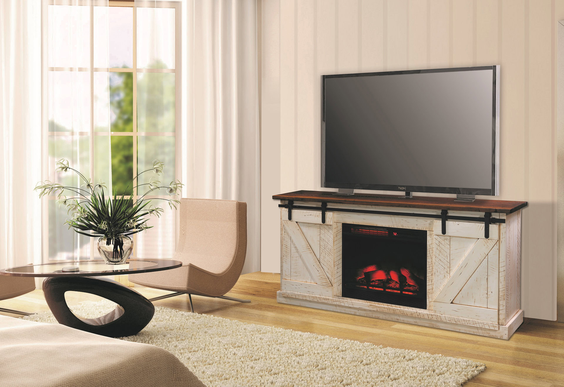 This Durango Fireplace TV Stand has a very rustic feel to it. Its embossed old wood appearance and sliding barn doors are what give you that rustic farmhouse look. Imagine relaxing in your family room with an electric infrared fireplace that will keep you warm without any soot or smoke. So, it is healthier for you and anyone in your family or friends who may suffer from allergies and asthma. For anyone who has small children or pets you will love that this Durango Fireplace TV Stand’s glass doors do not get hot. In fact, this fireplace even has a sensor to turn off when something is too close for too long. So, rest assured if you are wanting a fireplace, but not all of the hassles that go with a wood burning one this is the fireplace TV stand for you.