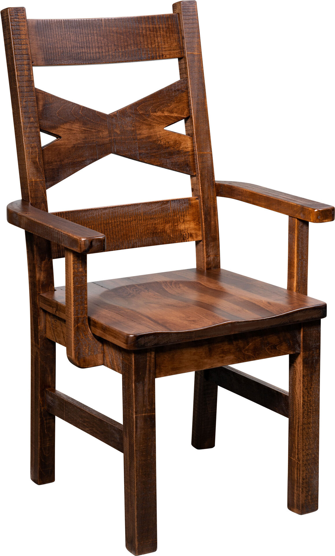 If you like a dining set with a burly persona plus a rustic vibe, you’ll love adding the Elkhorn Dining Chair. Because the X design in the backrest sets the chair apart — and delivers great back support. While the saddle scoop seat enhances comfort. For even more comfort, request a fabric or leather upholstered seat. Also, you can order your set of chairs with any combination of side chairs and armchairs. Amish cabinetmakers — the best in the Midwest — build the chair. And they use top hardwoods like cherry, oak and maple. No wonder the piece is so sturdy and heirloom-quality! Ready to order? Click the “Customize this product” button below. Then, fill out the customization fields. Or call 877-357-2106.