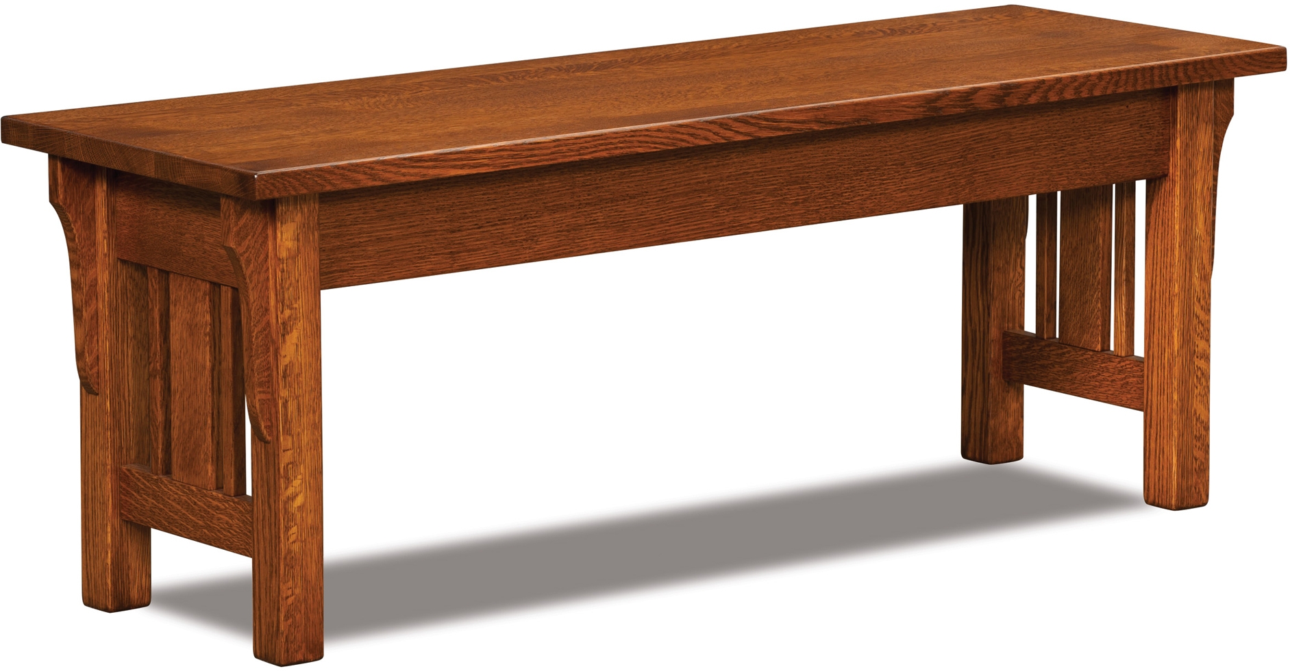 The decorative corbels and slats on the Elliot Hardwood Bench enhance the Mission style. As a result, the bench makes an attractive and practical addition to your dining room, hallway, or entryway. Or elsewhere in your home. We offer the bench in lengths of 3, 4, 5, and 6 feet. So you can choose the length that best fits your needs and desires. What’s more, the Elliot Hardwood Bench is incredibly sturdy. Because Amish cabinetmakers – the best in the Midwest – handcraft each bench from solid hardwoods. Like cherry and quarter-sawn oak (shown with Michael’s Chery Stain). And the seat is 1-inch-thick solid hardwood. So the bench is heirloom-quality! To order, click the “Customize this product” button below. Then, complete the customization fields. Or call 877-357-2106.