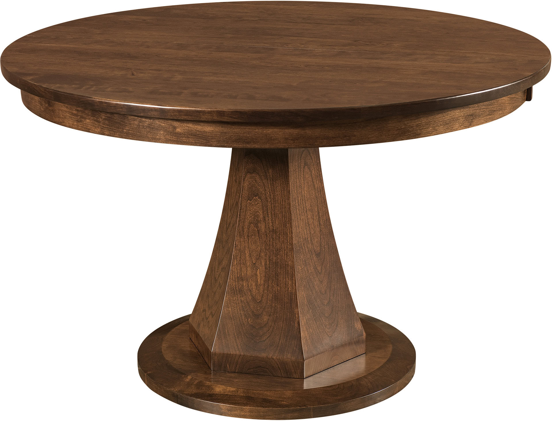 With its large base, gracefully tapering upward to meet the round top, the Emerson Dining Table creates a beautiful centerpiece to your dining space. Since this is a pedestal table, there are no table legs to block the seating area. So you can fit more people around the table.