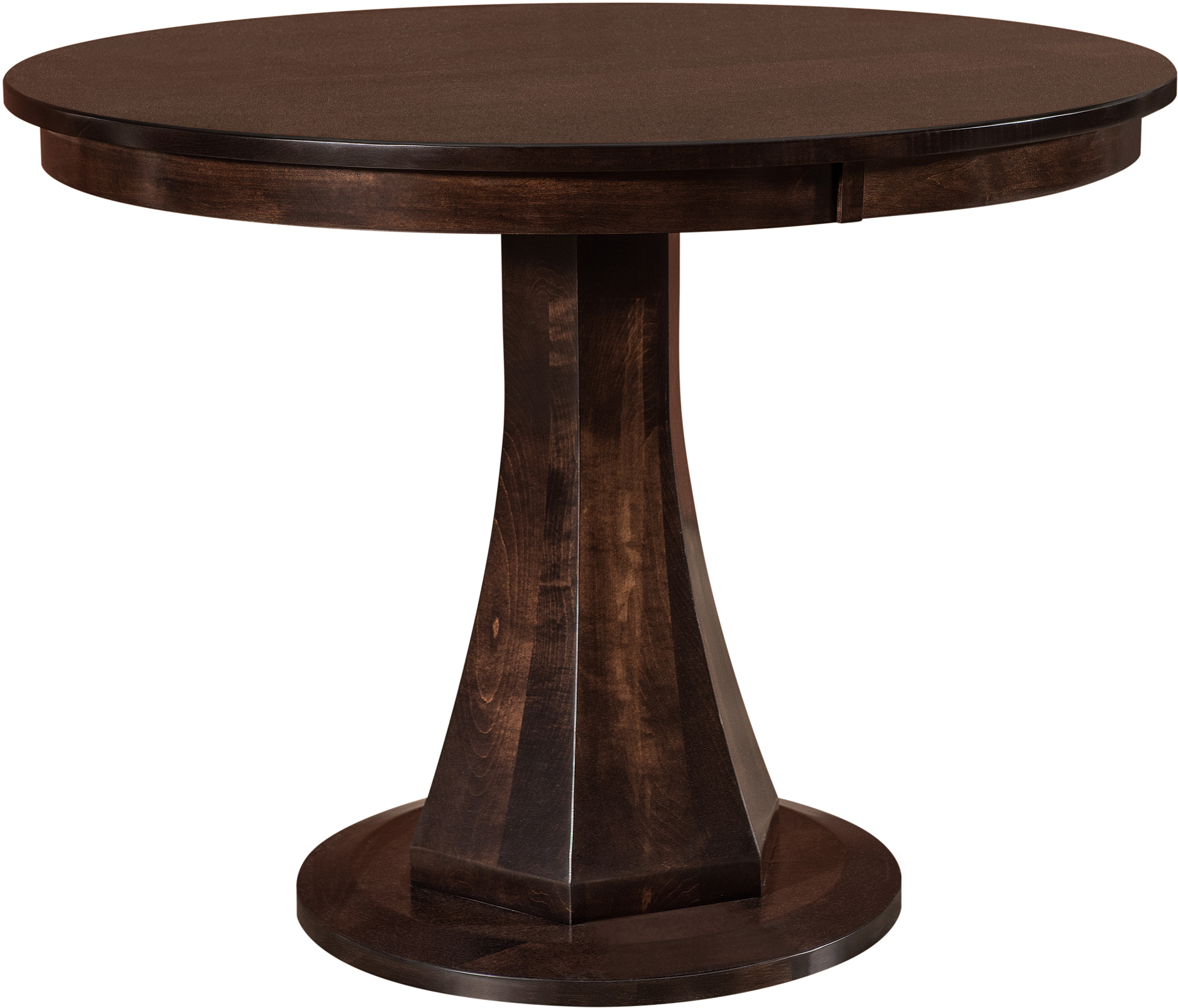 The Emerson Dining Table comes 42 or 48 inches in diameter and 36 or 42 inches high. So it’s perfect as a smaller dining table — or a pub table. Add up to two leaves, and you’re able to accommodate at least six people. In addition, we equipped the table with geared equalizer slides. This means expanding it is as simple as pulling at one end, then inserting the leaves.