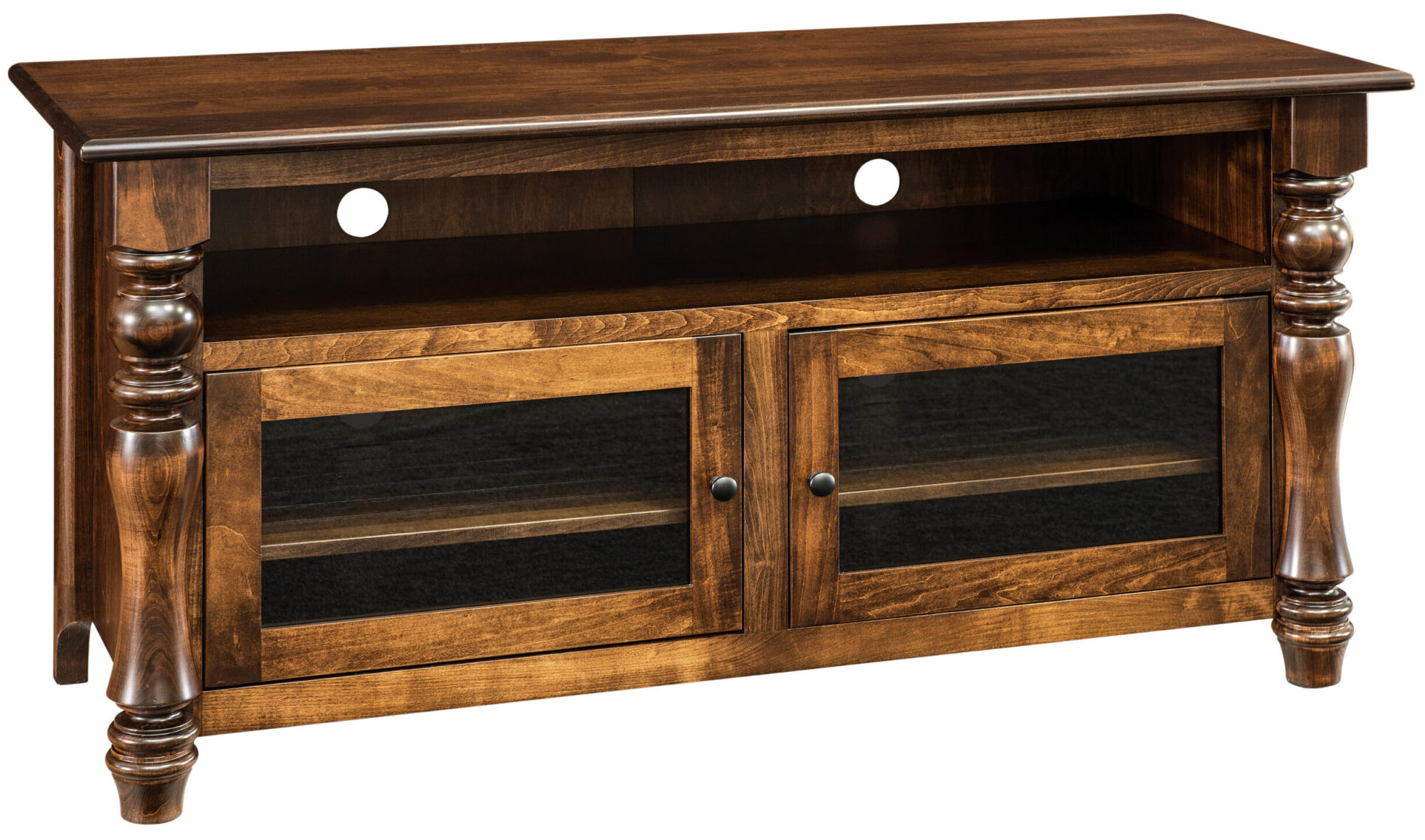 The Empire TV Cabinet blends an elegant design with rich finishes. The turned post legs and curved details of the hardwood TV Cabinet offer a regal style to the stand. In addition, we design the TV Cabinet with both open and closed compartments. Thus, making your storage options versatile and plentiful. Our craftsmen construct this cabinet with solid hardwood. This allows the furniture, with proper care, to last for years to come. The TV Cabinet will fit your family room perfectly and become an instant conversation piece.
