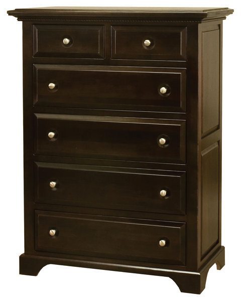 The stately look of the Mission style shines through in the Escalade Hardwood Chest, making it a beautiful choice for your master bedroom. Check out the clean lines, raised drawer fronts and raised panel sides. Yet, we added some frills. Like the decorative rope treatment beneath the 1-inch-thick, solid hardwood top. Plus the recessed knob hardware. The dovetail drawer joints excel in strength. Amish cabinetmakers – the best in the Midwest – build the chest. And they use top hardwoods – like oak, cherry and brown maple (shown). No wonder the piece is so great-looking, sturdy – and heirloom-quality! Ready to order? Click the “Customize this product” button below. Then, fill out the open (blank) fields. Or call 877-357-2106.