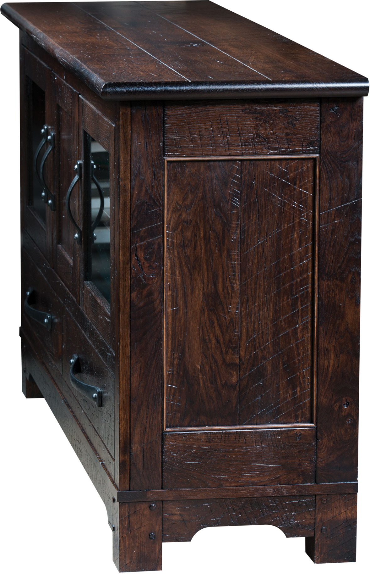 Beaming with elegance, the Farmhouse Large TV Stand will make an upscale and feature-filled addition to your living room or den. The embossed old wood appearance catches the eye. As does the reverse panel sides with applied molding. Also the matching hardware. We place an adjustable shelf behind each door. And they close with a gentle push. In addition, the drawers open full extension. So you’ll enjoy easy access to everything inside. Even items at the back. While the dovetail drawer joints excel in strength. Amish cabinetmakers build each Farmhouse Large TV Stand. Also, they use top hardwoods. Like cherry, maple and oak. So the TV stand is incredibly sturdy. Beautiful. And heirloom-quality! Ready to order? Click the “Customize this product” button below. Then, complete the “Customize Product” fields. Also click the “Get your customized quote” button. Or call 877-357-2106.