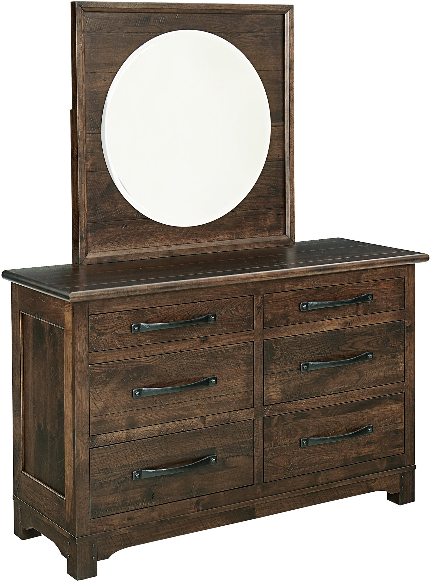 The Farmhouse Style Mirror is available in a circle or rectangle shape. Since the hardwood can be your selection it will blend well with any bedroom suite.