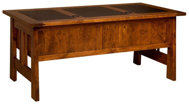 Take one look. And you’ll agree the Freemont Mission Open Pedestal Desk is truly great-looking. Indeed, you can’t help admiring the tapered legs, streamline design and brass hardware. (The leather insert top shown is no longer available.) The drawers open full-extension for easy access to your files and supplies. Also, the desk has a file drawer on one side and two small drawers on the other. What’s more, we finished the back. So the desk looks great from all angles. Amish cabinetmakers – the best in the Midwest – build the desk. And they use top hardwoods like quarter-sawn white oak (shown with Michael’s Cherry stain). No wonder the piece is so great-looking, sturdy and heirloom-quality! Ready to order? Click the “Customize this product” button below. Then, fill out the customization fields. Or call 877-357-2106.