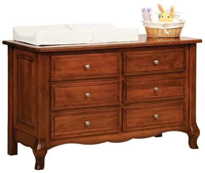 The French Country Changer Dresser is a beautiful chest that will grow in age with any child. The dresser style features two French style legs and 6 full-extension drawers. Also, the raised panel sides and scalloped base give the dresser an elegant appearance. Add to the dresser by purchasing the matching conversion crib, day bed, and full bed. Other additions for the set would include chests, nightstands, and mirrors. The quality of this bedroom furniture will last a lifetime.